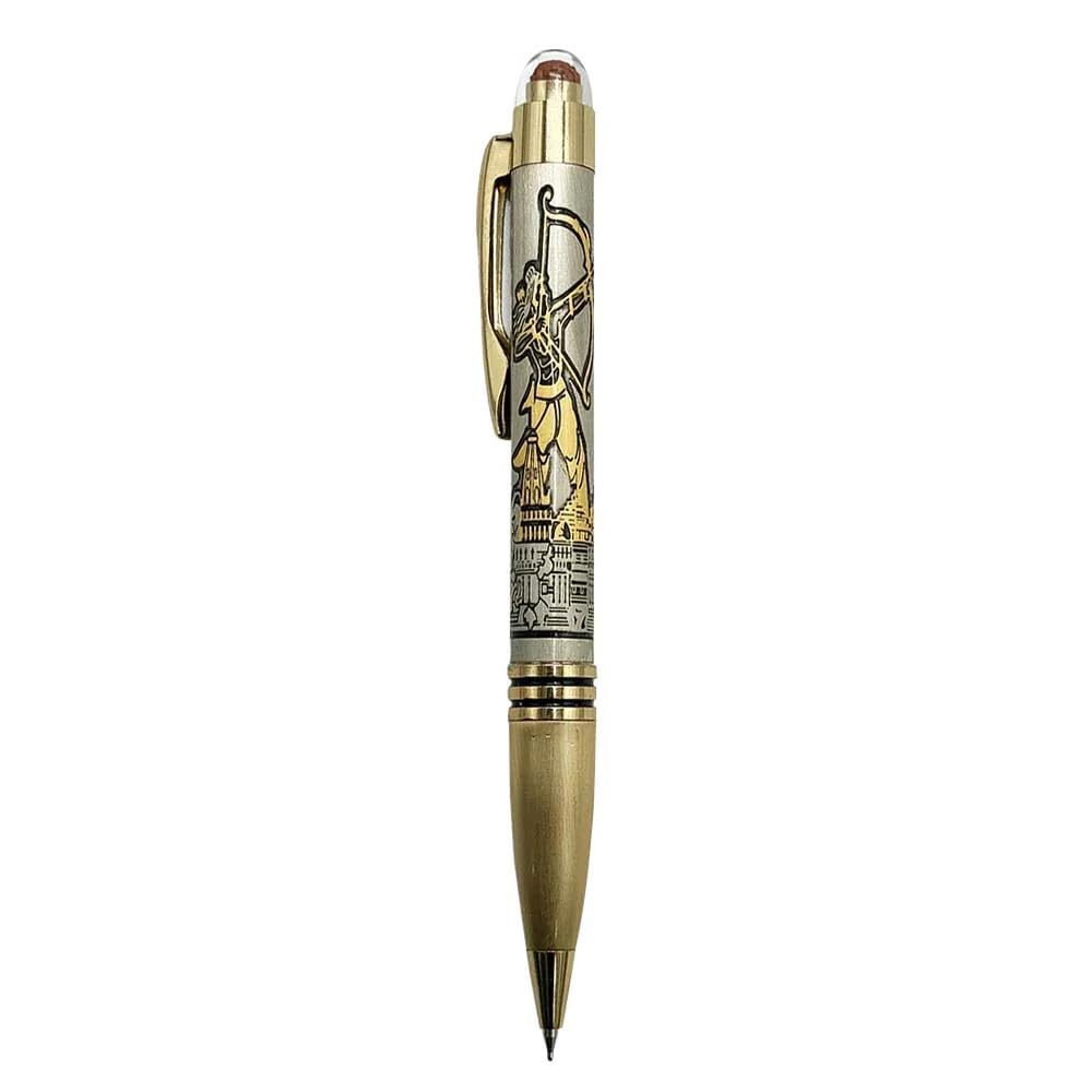 Pen Specifications : Rudraksha Studded Detail – The pen is adorned with Rudraksha on to, providing a visually appealing and tactile texture. Premium Metal Body – Crafted from high-quality metal, this pen exudes sophistication while ensuring durability and longevity. Blue Ink Jotter Refill – Fitted with a blue ink jotter refill, this pen offers smooth and consistent writing. Engraved with God Image – Detailed engraving of God adds a touch of divine elegance and attention to detail.