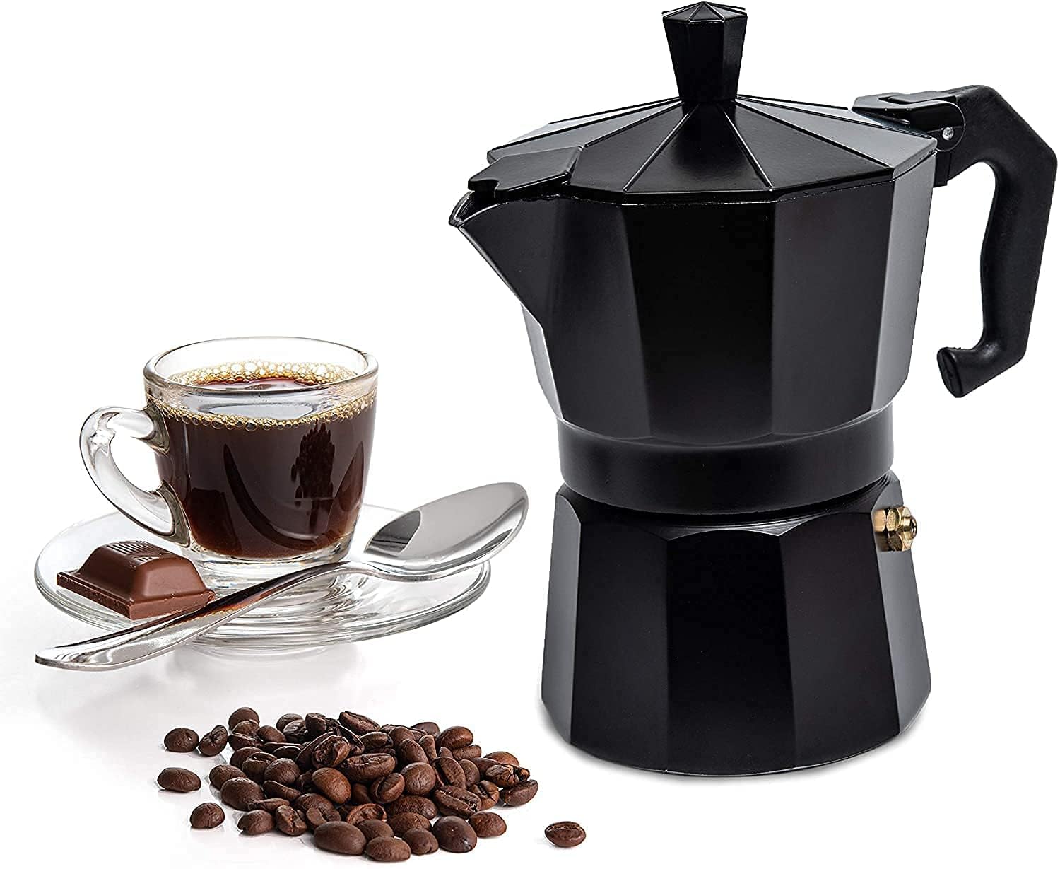 ☕ Experience Authentic Italian Coffee at Home: Brew rich, aromatic espresso just like in a café with the Aluminum Stovetop Espresso Maker Moka Pot. Crafted from premium-grade aluminum, this durable coffee maker ensures even heat distribution, delivering consistent flavor and aroma in every cup. Its sleek black design adds elegance to your kitchen while bringing professional-quality coffee to your countertop.