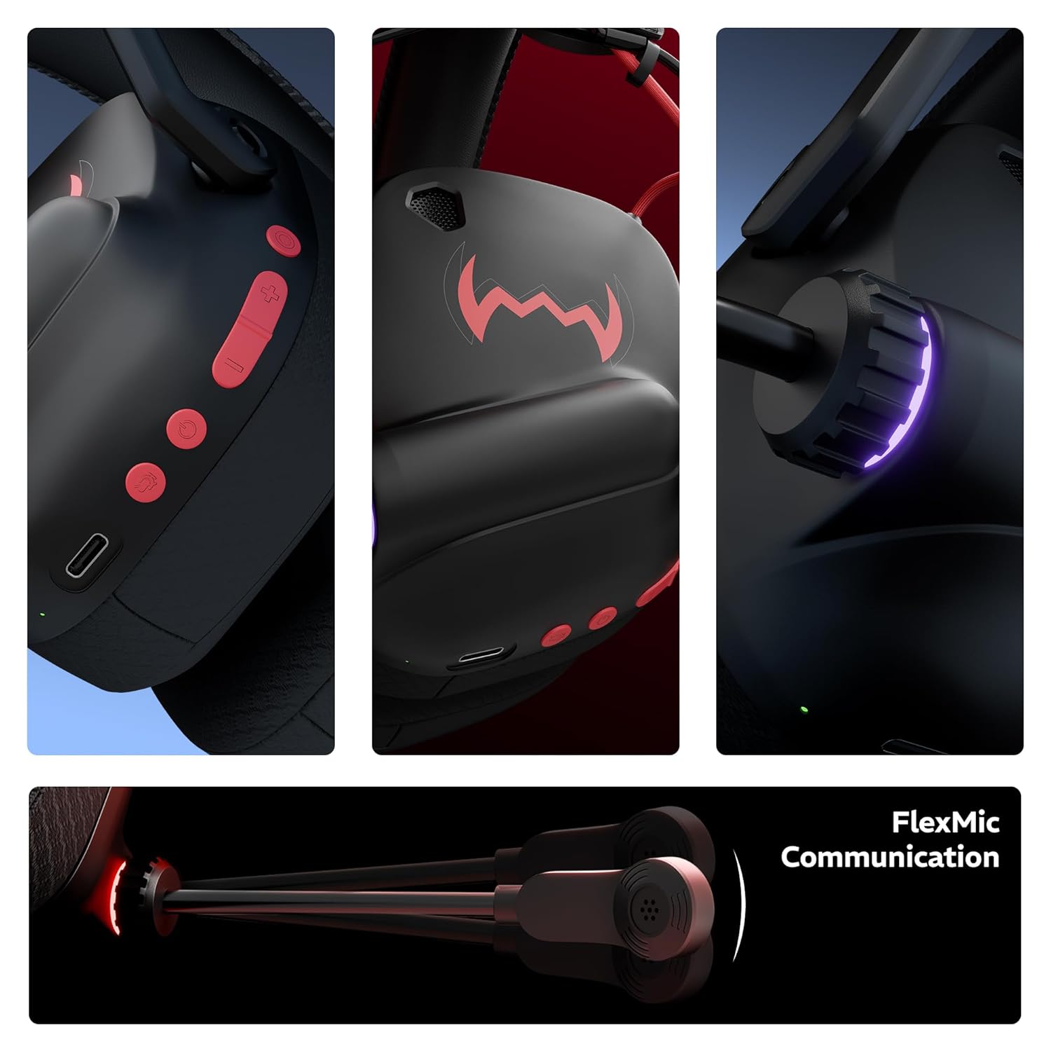 FlexMic Communication: FlexMic Communication ensures clear voice pickup for seamless in-game chat and team coordination—ideal for competitive gaming. With quick-access buttons, you can easily adjust the volume or mute the mic on the fly, all without interrupting your gameplay.