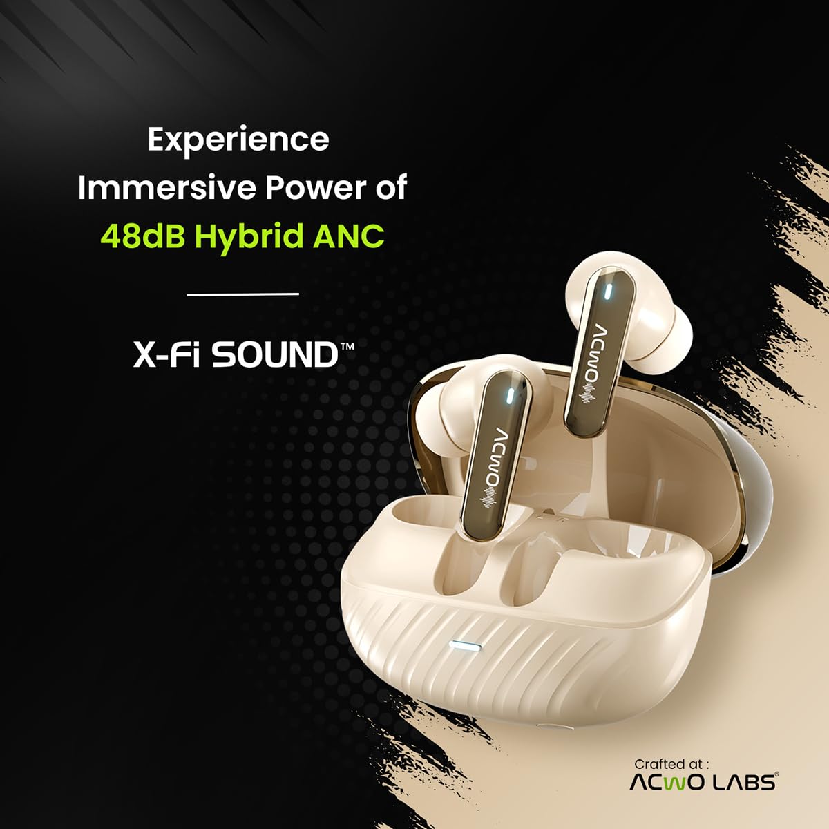 ACwO Dwots 333 Earbuds | 120Hrs Playtime | True Wireless Hexa Mics with Hybrid ANC & Ai-Enc | 48Db Noise Cancellation | 50Ms Low Latency | Dual Device Connectivity – Pastel Grey
