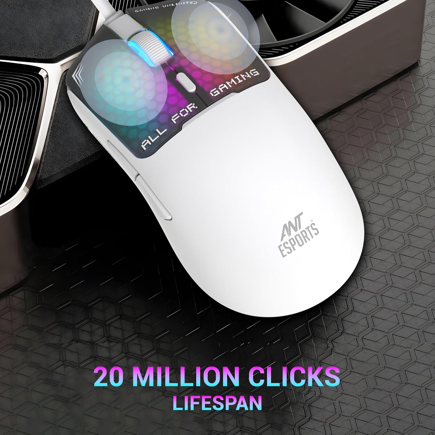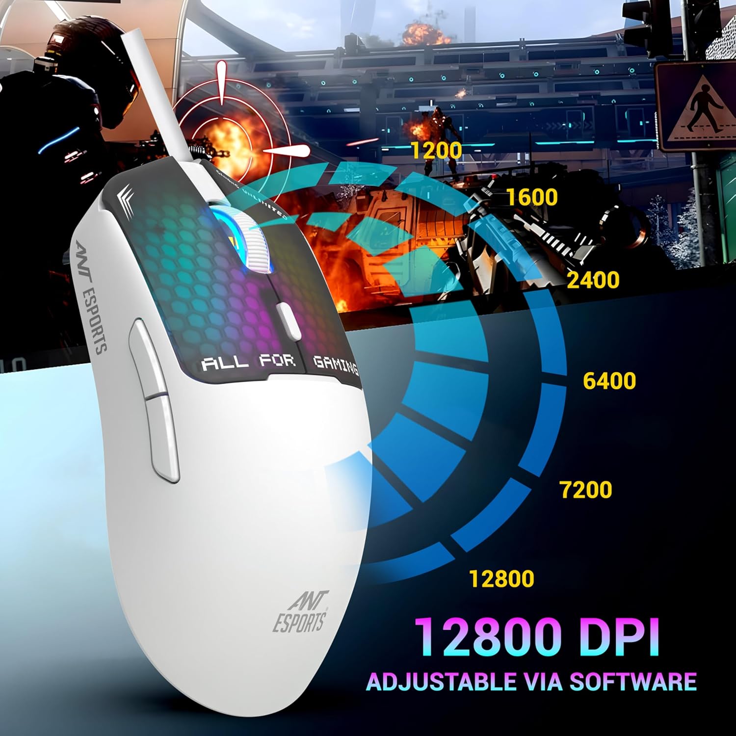 Ant Esports Virtus100 Wired RGB Gaming Mouse | Light Weight |6D Durable Buttons | High Performance Up to 12800 DPI 1000Hz Polling Rate | AI Sensor | 20M Click | Software Support Esports Mouse_ White