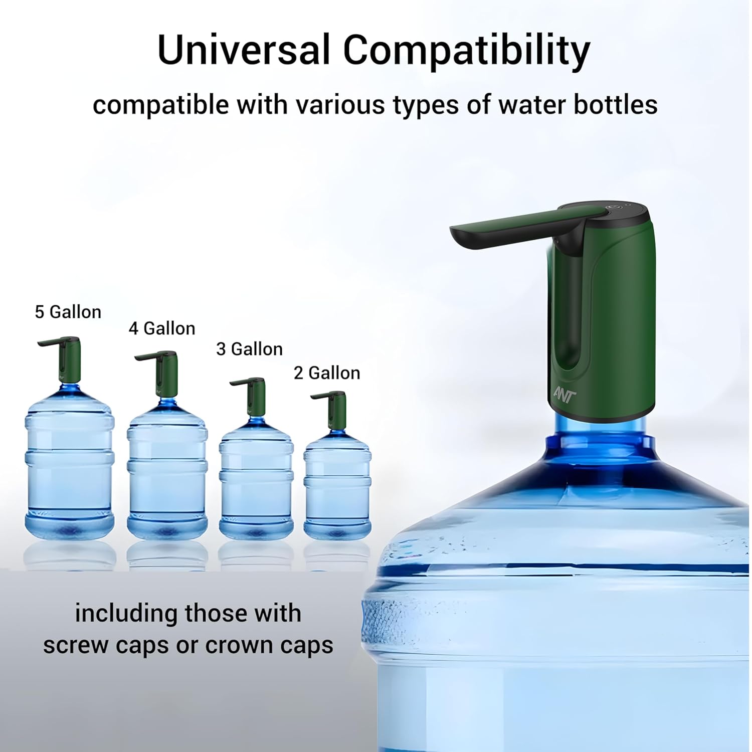 Ant H2O 20 Rechargeable Water Dispenser Pump for up to 20Ltr, Foldable Portable Water Bottle Pump USB Charging Electric Drinking Water Pump for Camping,Water Table Pump, Kitchen_ Green