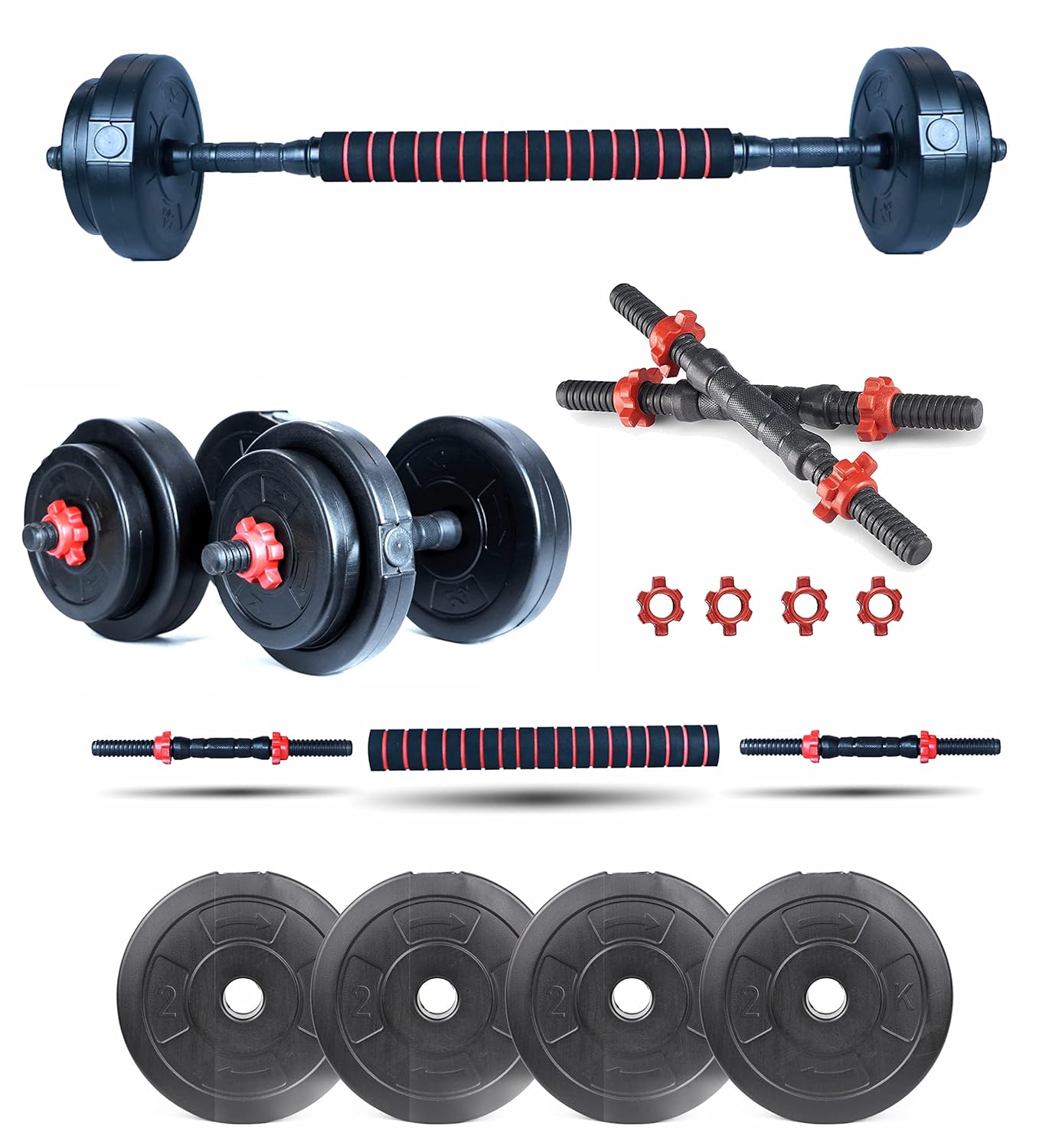 【Package List】- 2KG X 4 + 3KG X 4= 20kg PVC Weight Plates, 14 inches Dumbbell rod & Connecting rod.