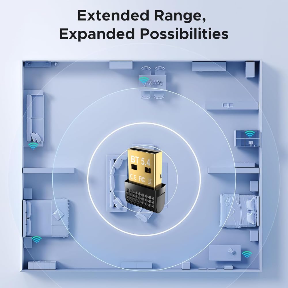 Broad Compatibility: The adapter supports Bluetooth 5.4 and is backward compatible with earlier versions such as Bluetooth 5.3,5.0,4.0 and more.
