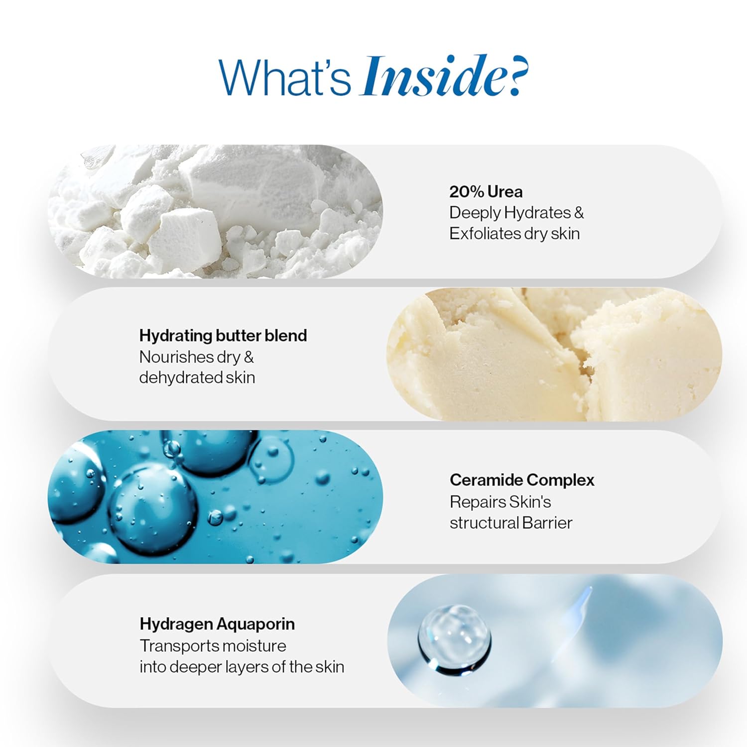 48 HOUR INTENSIVE HYDRATION: 20% Urea deeply moisturizes, softening even the driest, flakiest skin.