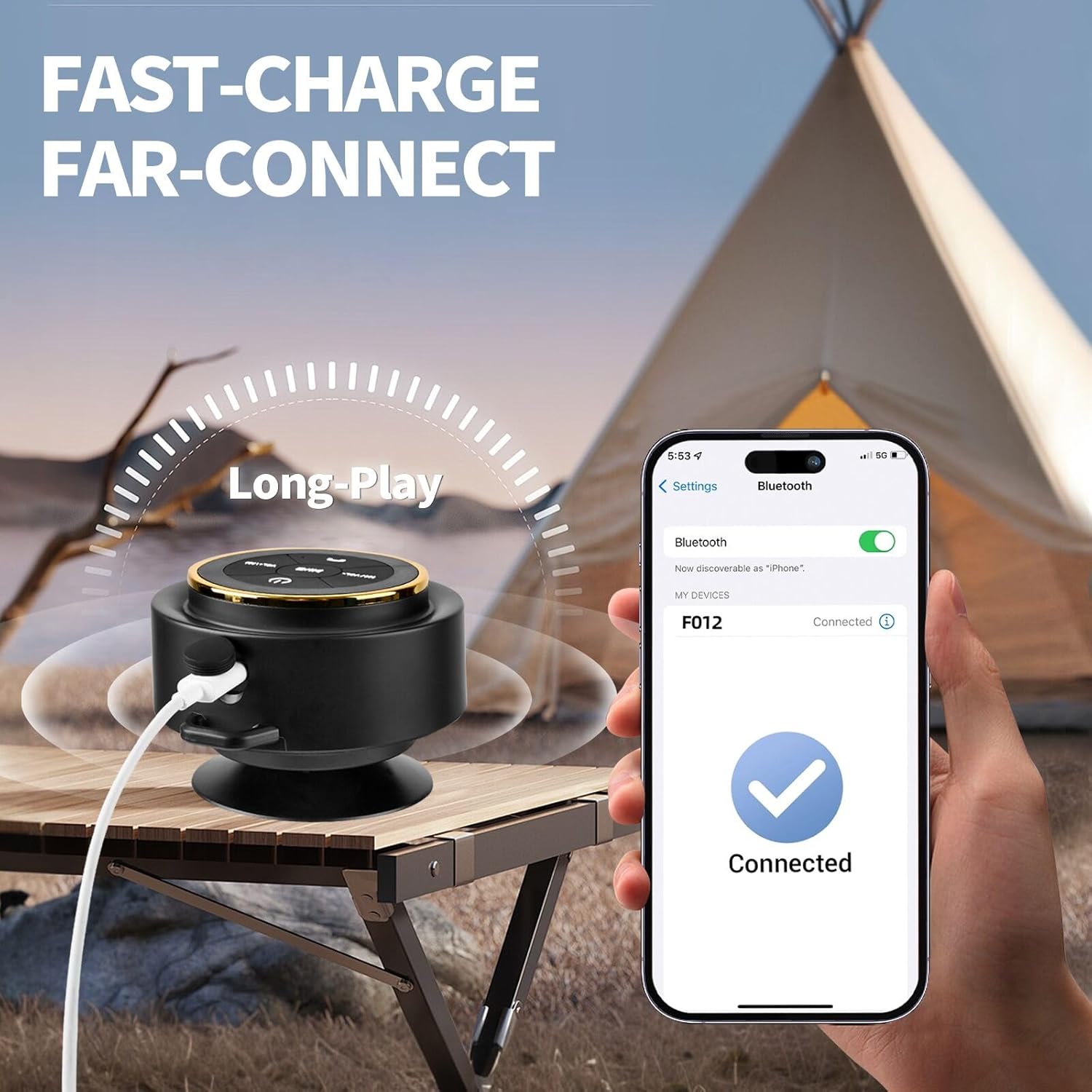 【Waterproof Speaker-Long Lasting Playtime】Enjoy non-stop music with our shower speaker bluetooth waterproof powered 1200mAh battery that lasts up to 12 hours on a single charge. With quick recharging taking only 4 hours, you’ll never run out of music on-the-go