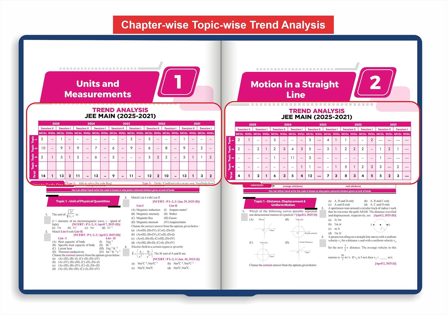 • The 183 papers are organized into 30/22/24 Chapters and 95/74/71 Topics, strictly following the new NCERT textbook sequence for Class 11 and 12, making this a highly structured JEE PYQ book.