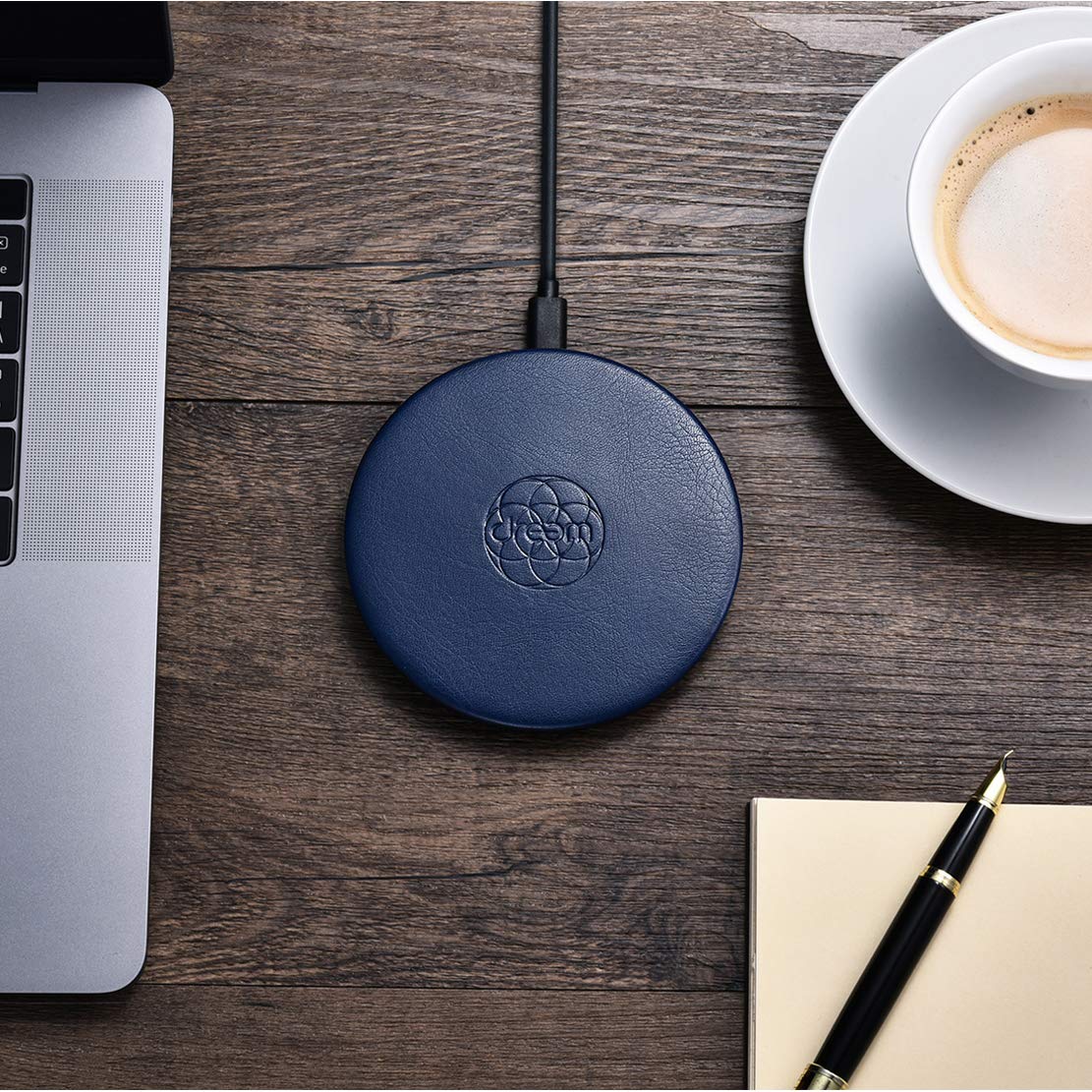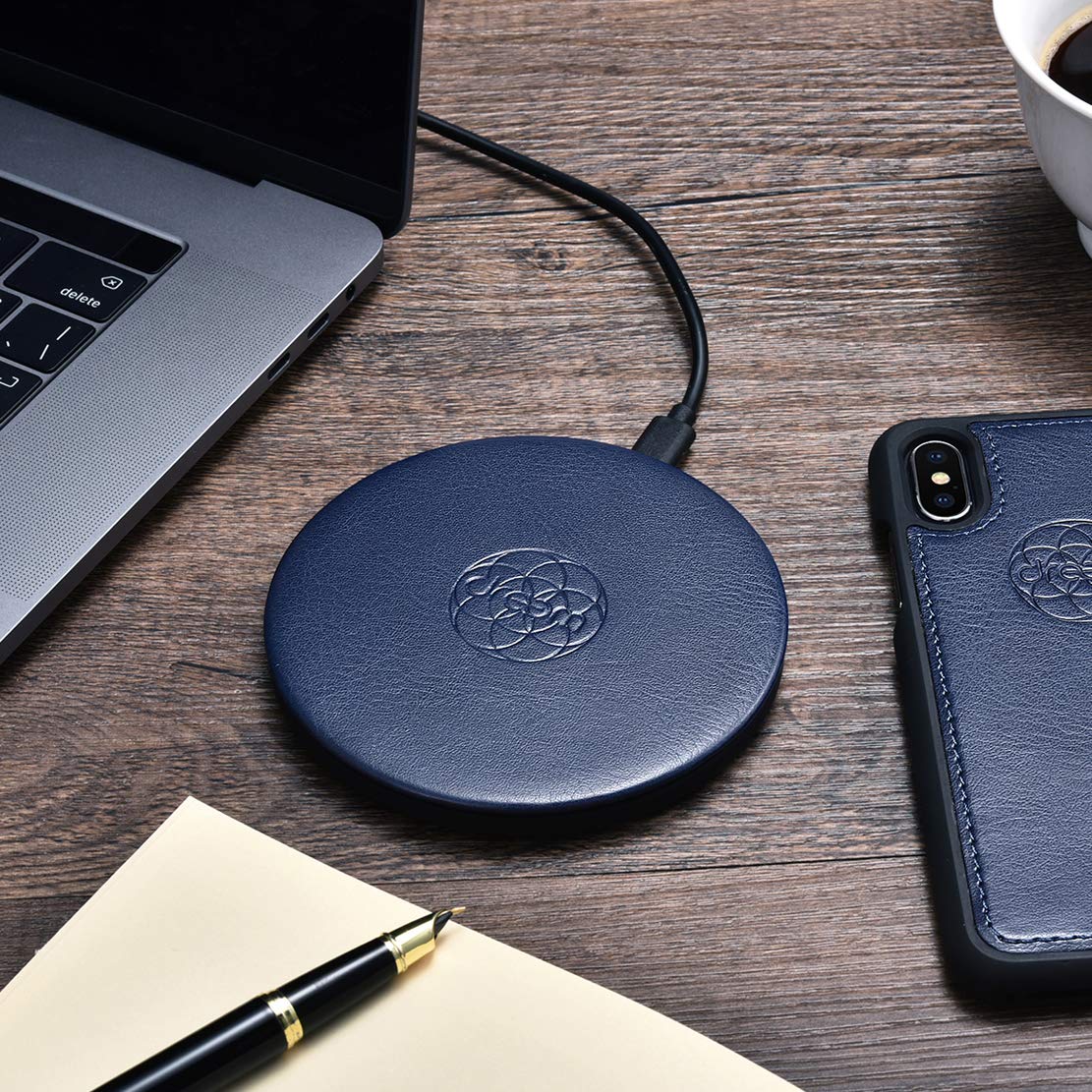 Dreem Beam 10W Wireless Charger, Premium Vegan Leather Qi-Certified Inductive Fast Charging Pad, Gift-Box – Royal