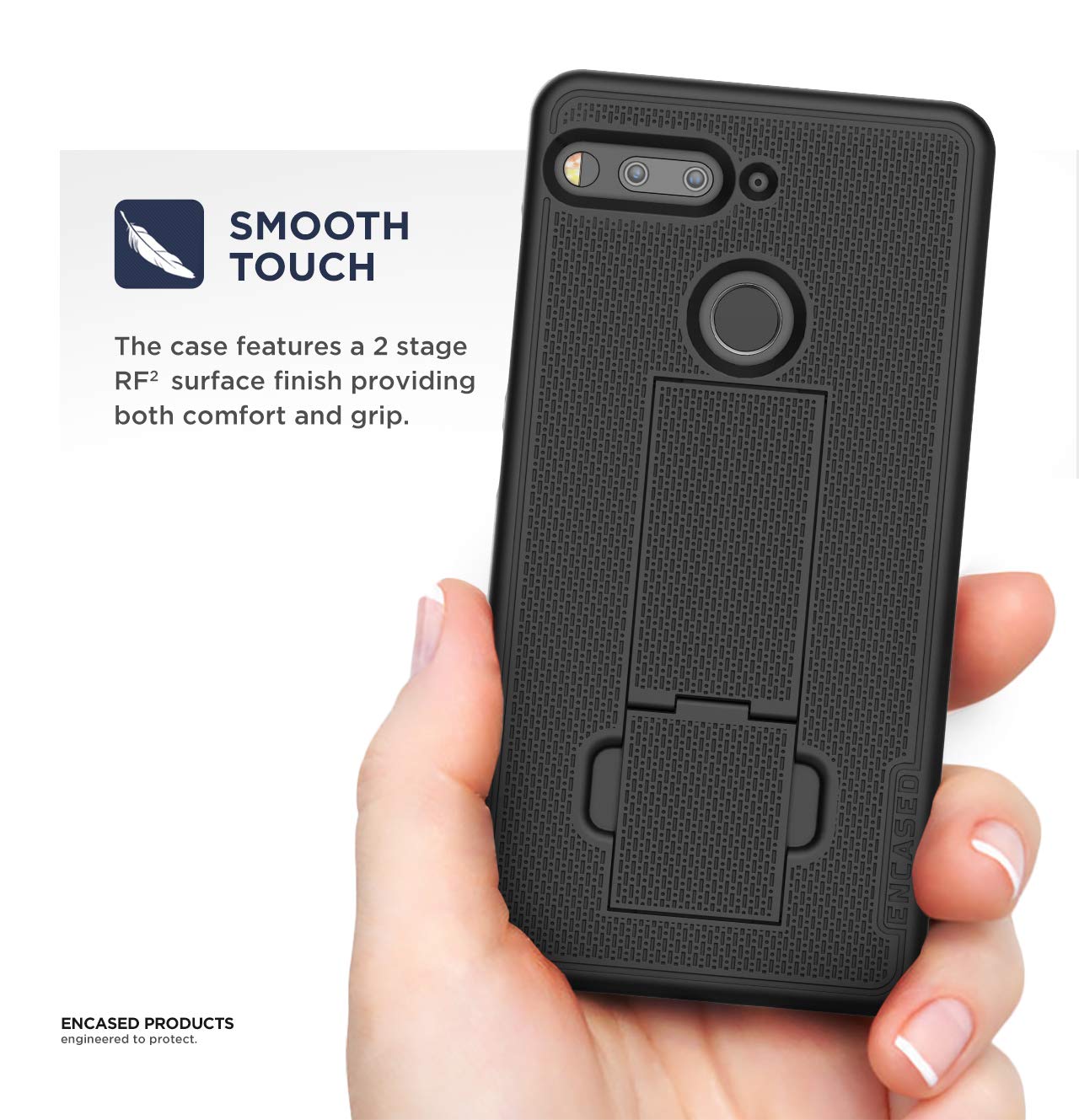 A non slip finish adds grip and makes holding your Essentail phone easy and comfortable.