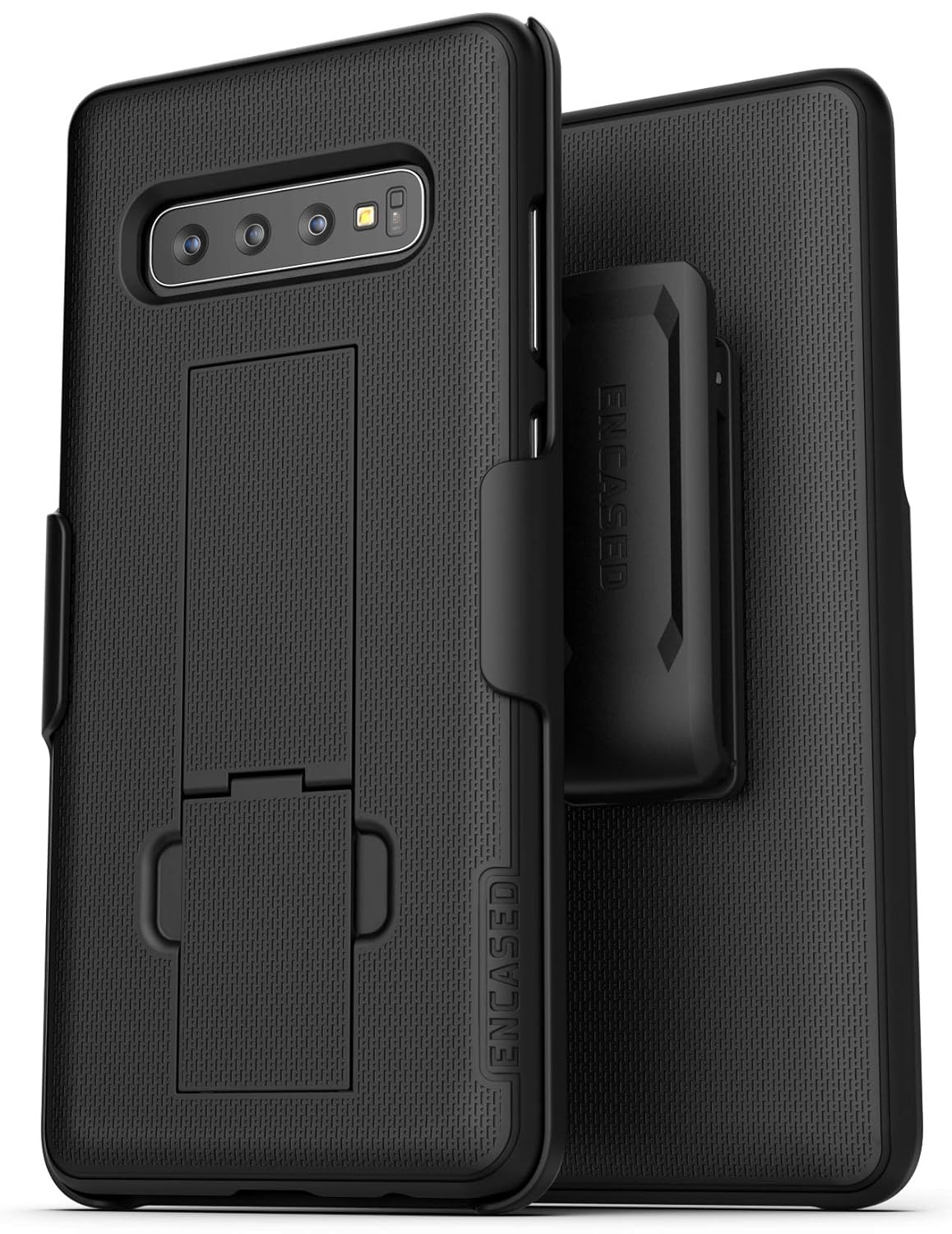 Encased Galaxy S10 Plus Belt Clip Case (2019 DuraClip) Slim Grip Cover w/Holder for Samsung Galaxy S10+ (Black)