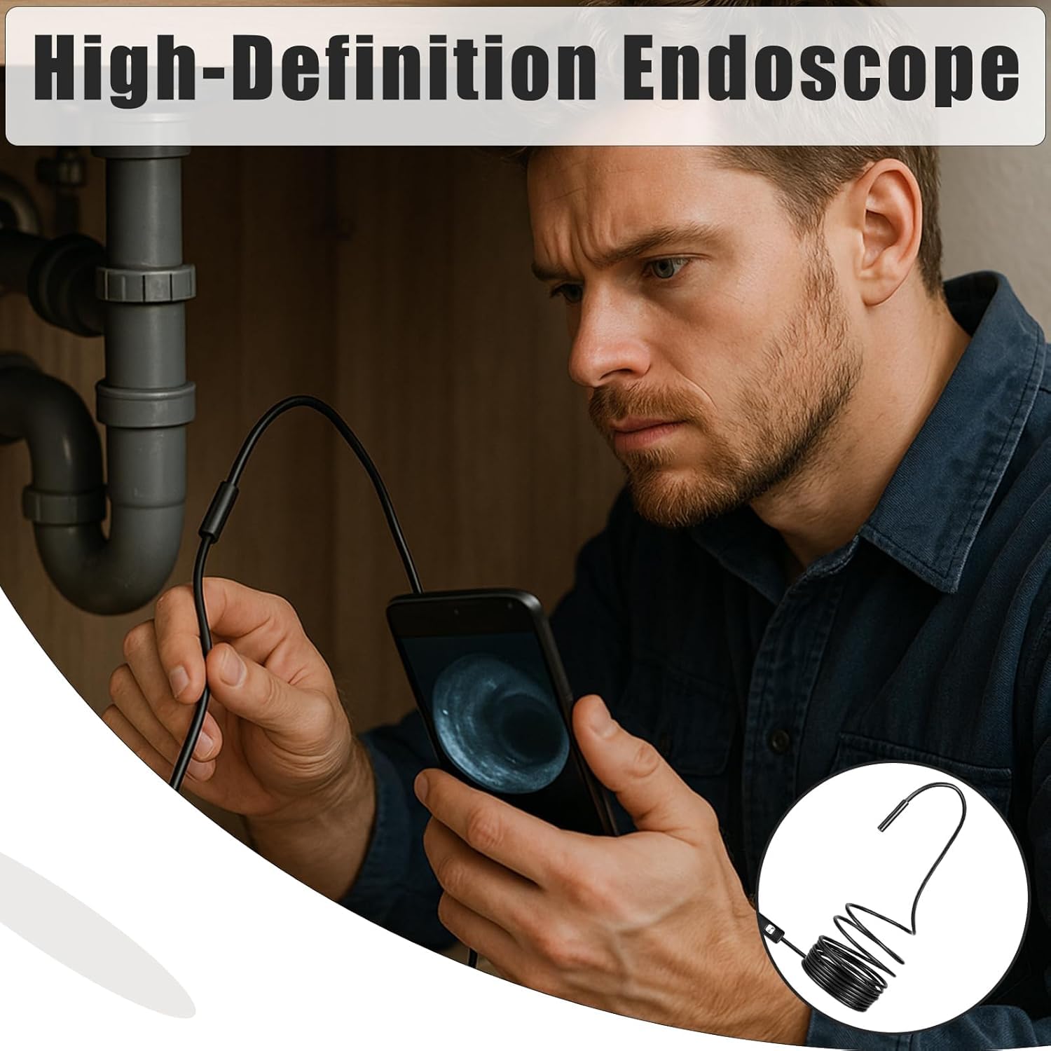 High-Definition Endoscope Inspection Camera – 720P HD, 5m Semi-Rigid Cable, IP67 Waterproof, for Automotive, Plumbing & Home Maintenance