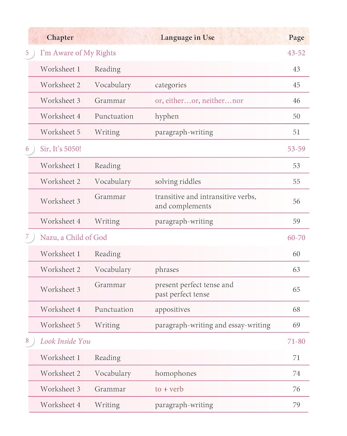 “Communicative Language Approach Designed around real-world communication needs of learners Promotes functional usage of English for listening, speaking, reading, and writing 🧩 Integrated Course Components Readers: Core learning through structured, multi-genre texts Workbooks: Mapped to Readers for practice and reinforcement Supplementary Readers (Classes 3–8): Exposure to diverse literary texts, building reading fluency and comprehension 📖 Engaging and Thoughtful Content Wide range of fiction and nonfiction texts to encourage cross-curricular engagement Lessons are clearly structured with defined learning objectives Life skills and values naturally integrated into reading material 🎧 Comprehensive Language Skills Development Includes listening and speaking practice, conversation prompts, and real-life scenarios Pronunciation drills to improve phonics and accent clarity Grammar taught with clarity and supported by contextual examples 🧠 Vocabulary & Self-Assessment Tools Active vocabulary building in a graded and contextual format End-of-lesson checklists for self-assessment and reflection 👩🏫 Supportive Teacher Resources Complete Teacher’s Manuals, answer keys, and additional practice worksheets Encourages blended learning through digital integration 🎯 Curriculum Aligned Compliant with National Education Policy (NEP) 2020 Designed around NCF 2023 learning outcomes”