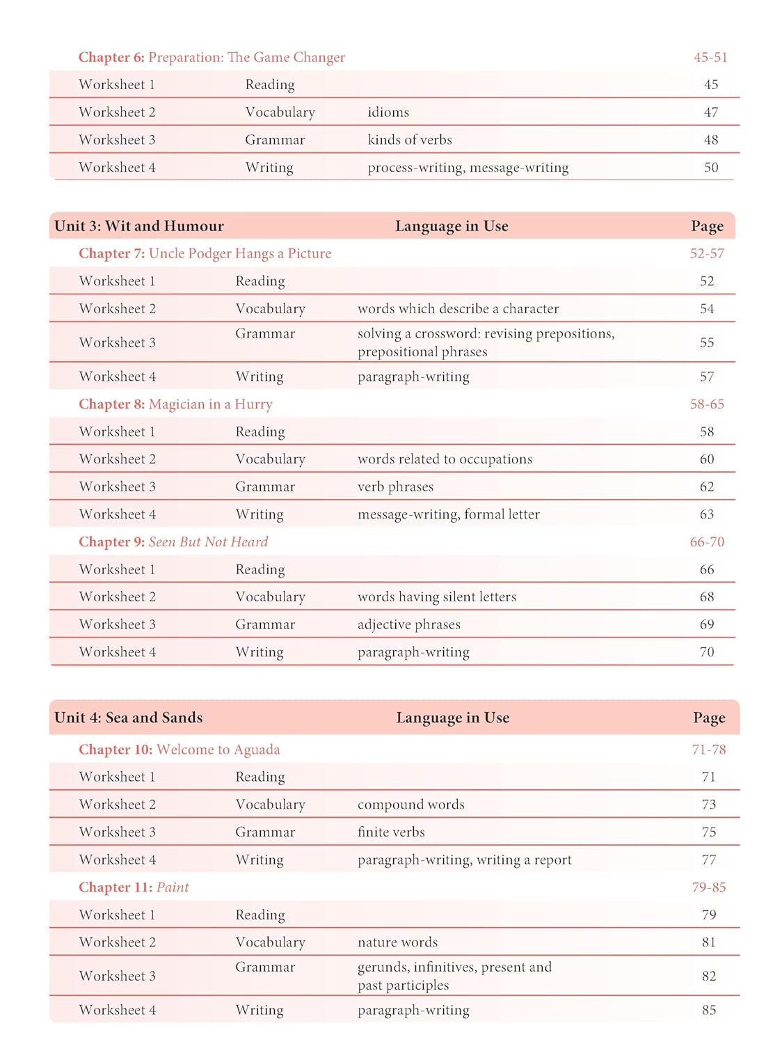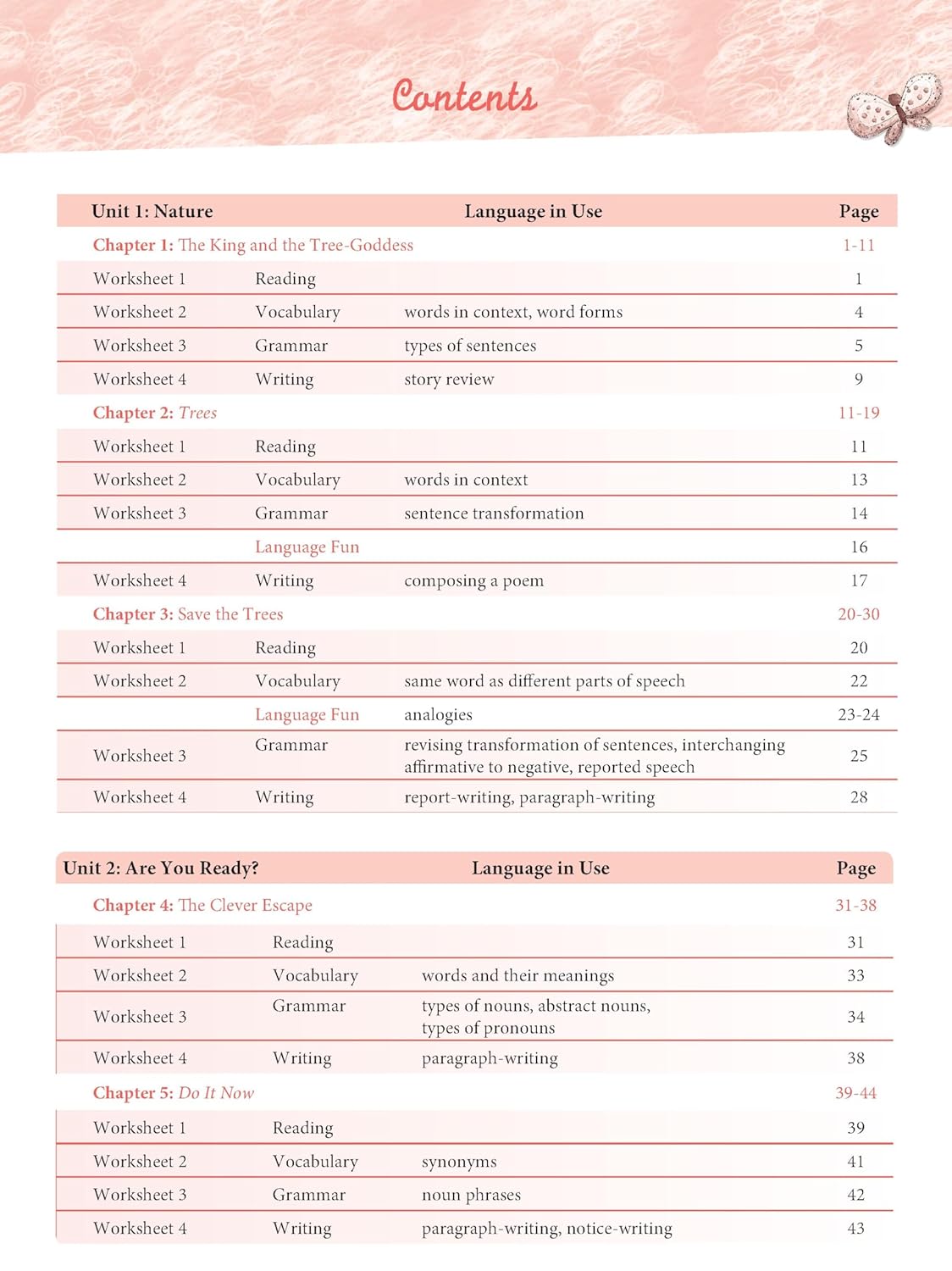 “Communicative Language Approach Designed around real-world communication needs of learners Promotes functional usage of English for listening, speaking, reading, and writing 🧩 Integrated Course Components Readers: Core learning through structured, multi-genre texts Workbooks: Mapped to Readers for practice and reinforcement Supplementary Readers (Classes 3–8): Exposure to diverse literary texts, building reading fluency and comprehension 📖 Engaging and Thoughtful Content Wide range of fiction and nonfiction texts to encourage cross-curricular engagement Lessons are clearly structured with defined learning objectives Life skills and values naturally integrated into reading material 🎧 Comprehensive Language Skills Development Includes listening and speaking practice, conversation prompts, and real-life scenarios Pronunciation drills to improve phonics and accent clarity Grammar taught with clarity and supported by contextual examples 🧠 Vocabulary & Self-Assessment Tools Active vocabulary building in a graded and contextual format End-of-lesson checklists for self-assessment and reflection 👩‍🏫 Supportive Teacher Resources Complete Teacher’s Manuals, answer keys, and additional practice worksheets Encourages blended learning through digital integration 🎯 Curriculum Aligned Compliant with National Education Policy (NEP) 2020 Designed around NCF 2023 learning outcomes”