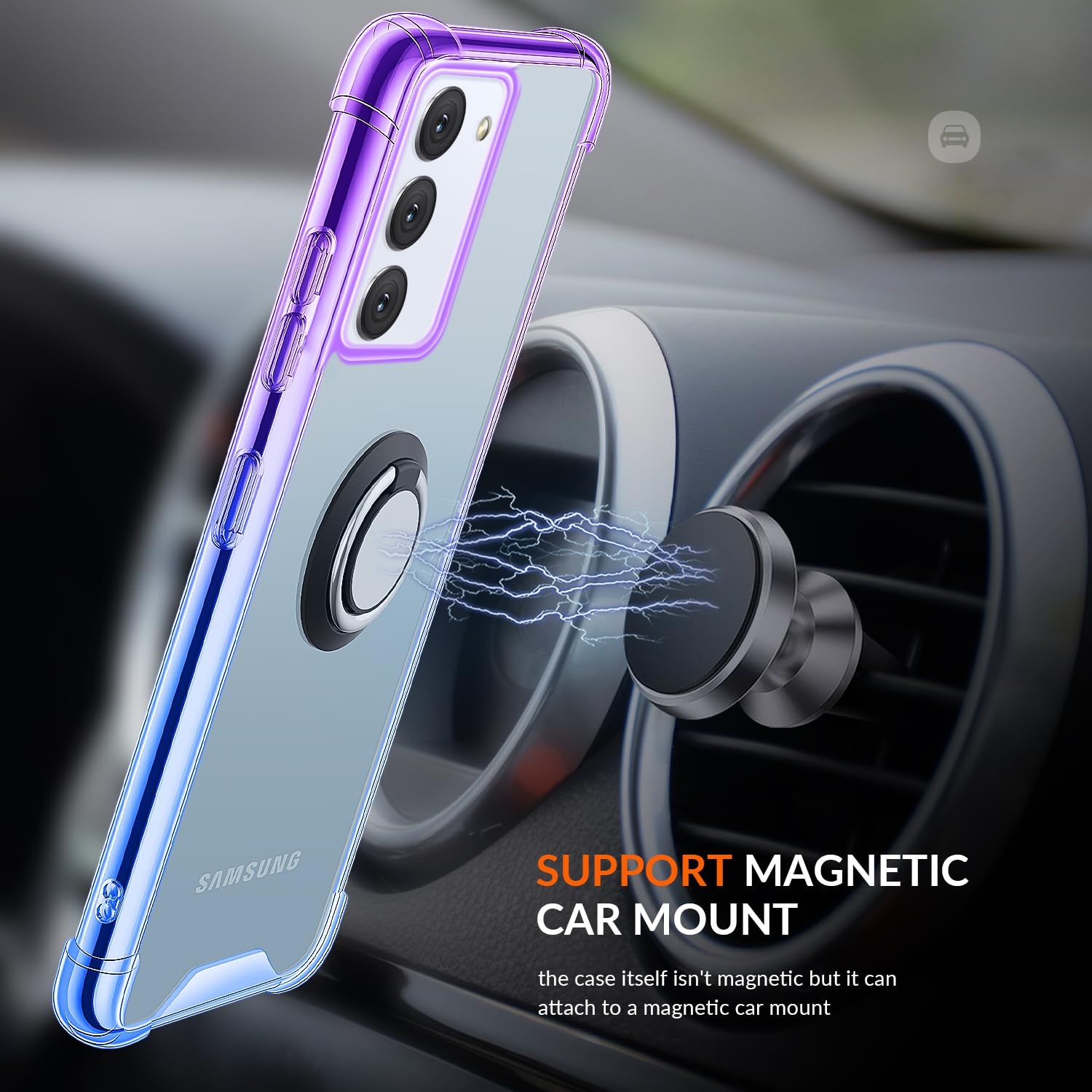 [Ring Kickstand]: Built in rotate 360 kickstand gives you the convenience to watch videos,The Metal plate can attach to magnetic car mount for navigation when driving.(the Metal no magnetic)