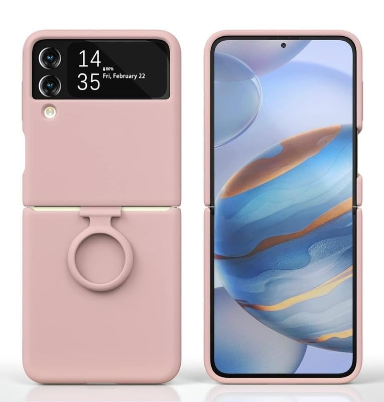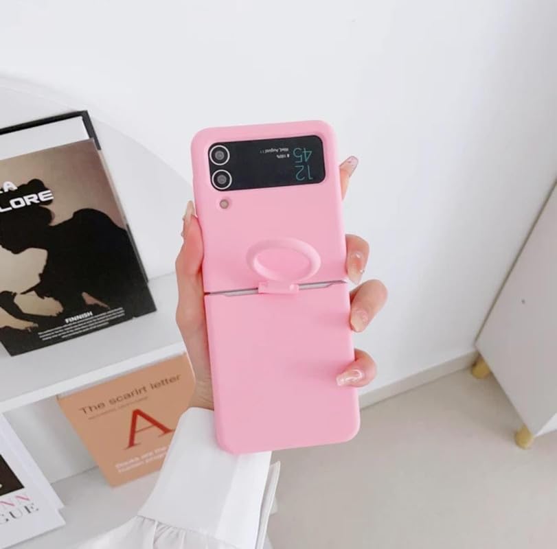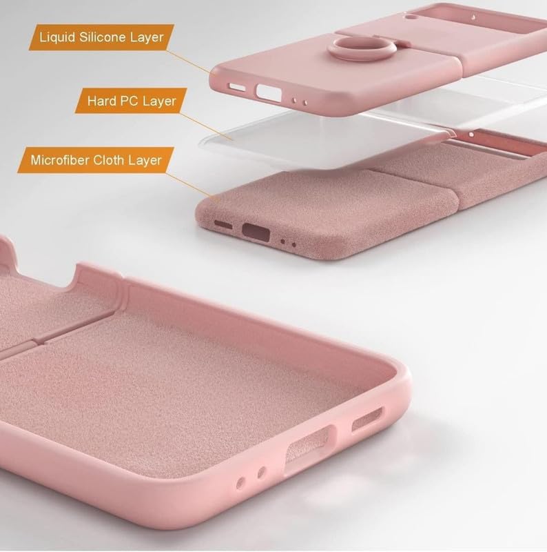 for Samsung Galaxy Z Flip3 5G / Samsung Galaxy Z Flip 3 5G Phone case with Finger Ring Soft Silicone Folding Screen Protector Back Cover-(Pink)