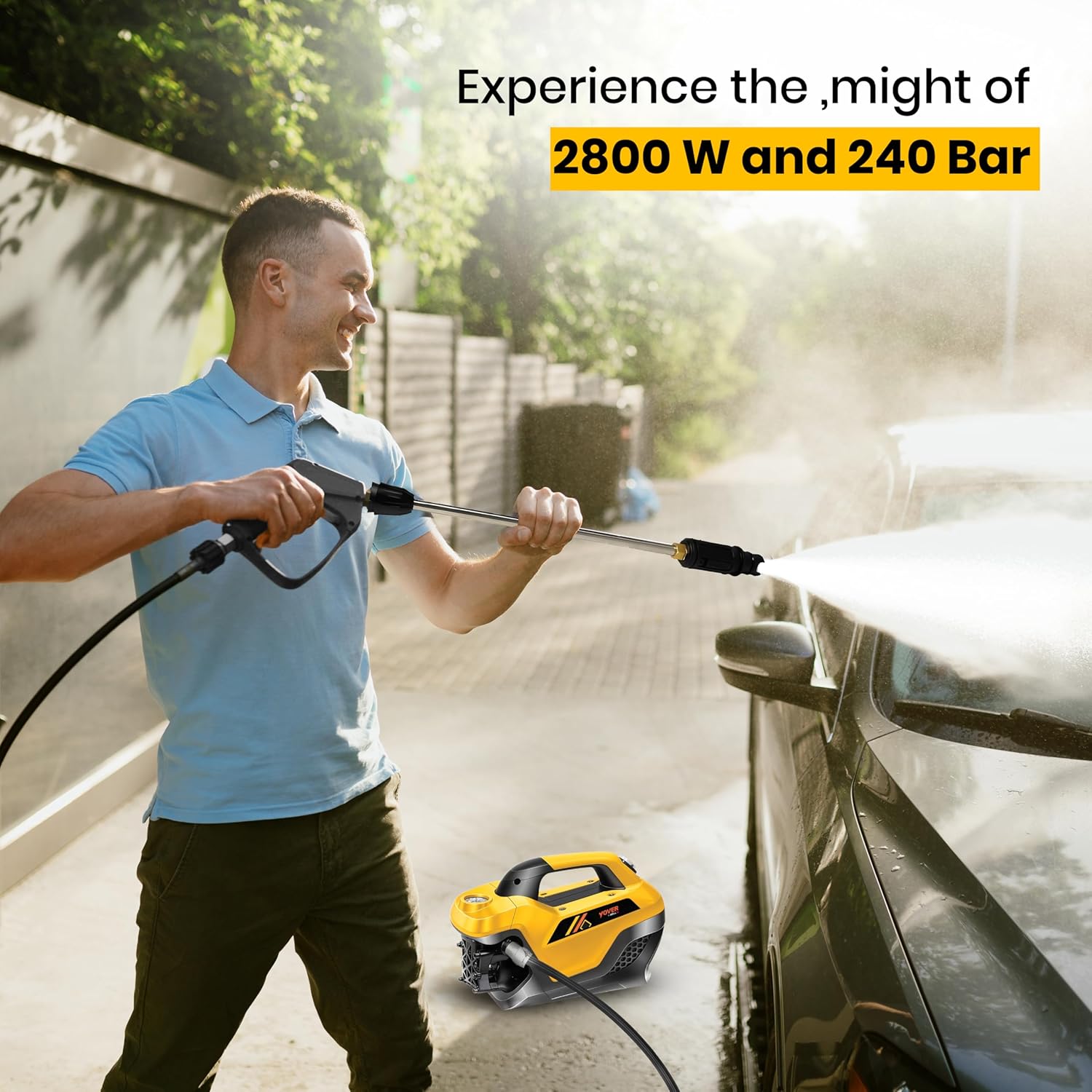 Powerful High Pressure Washer for Car & Home – Equipped with a 2800W induction motor and 240 bar pressure, this pressure washer for car delivers superior cleaning performance, removing tough dirt and grime from various surfaces.