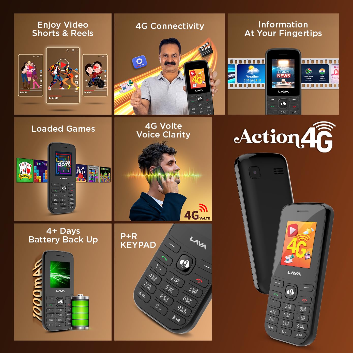 Lava Action 4G (Unlock for All Network) Shots, Cricket Scores, News, Weather & Cloud Entertainment | Auto Call Recording | Long-Lasting Battery | Camera | Black