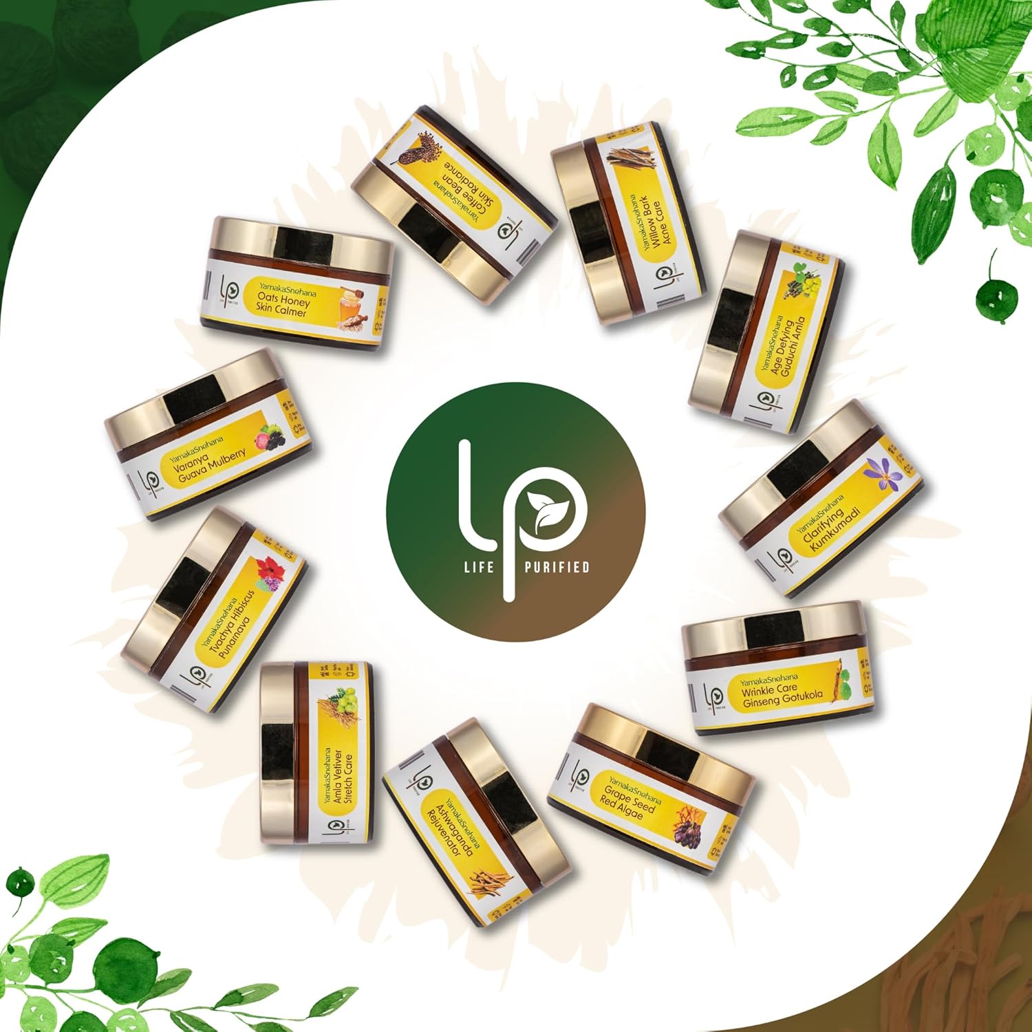 Experience the transformative benefits of YamakaSnehana Grapeseed Red Algae, a meticulously crafted blend designed to rejuvenate and enhance your skin. Enriched with potent anti-ageing properties from caffeine and horsetail extracts, this luxurious cream combines the therapeutic scents of lavender, vetiver, and carrot for a soothing aromatherapy experience. Horsetail extract further contributes by soothing and healing irritated skin, promoting overall skin health and resilience. Meanwhile, Grapeseed extract strengthens the skin’s natural barrier, effectively reducing redness and inflammation caused by breakouts. The addition of red algae ensures deep hydration and revitalization, leaving your skin feeling irresistibly soft, dewy, and refreshed with each application. Embrace smoother, younger-looking skin as this cream actively reduces fine lines, wrinkles, and repairs damaged skin, making it an essential part of your daily skincare regimen.