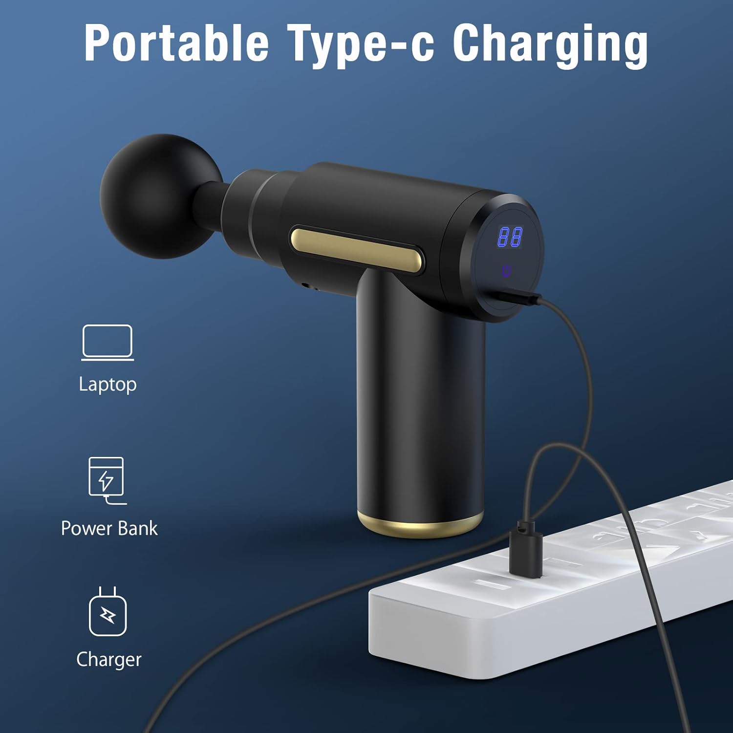 💪【LCD Screen and Long Working Time】- The cordless massage gun is equipped with an LCD screen that shows speed levels and battery indicator, so you don’t have to worry about power outages. The massage gun with 2600mAh rechargeable battery provides 3-4 hours working time after fully charged. It is a portable and cordless massager.