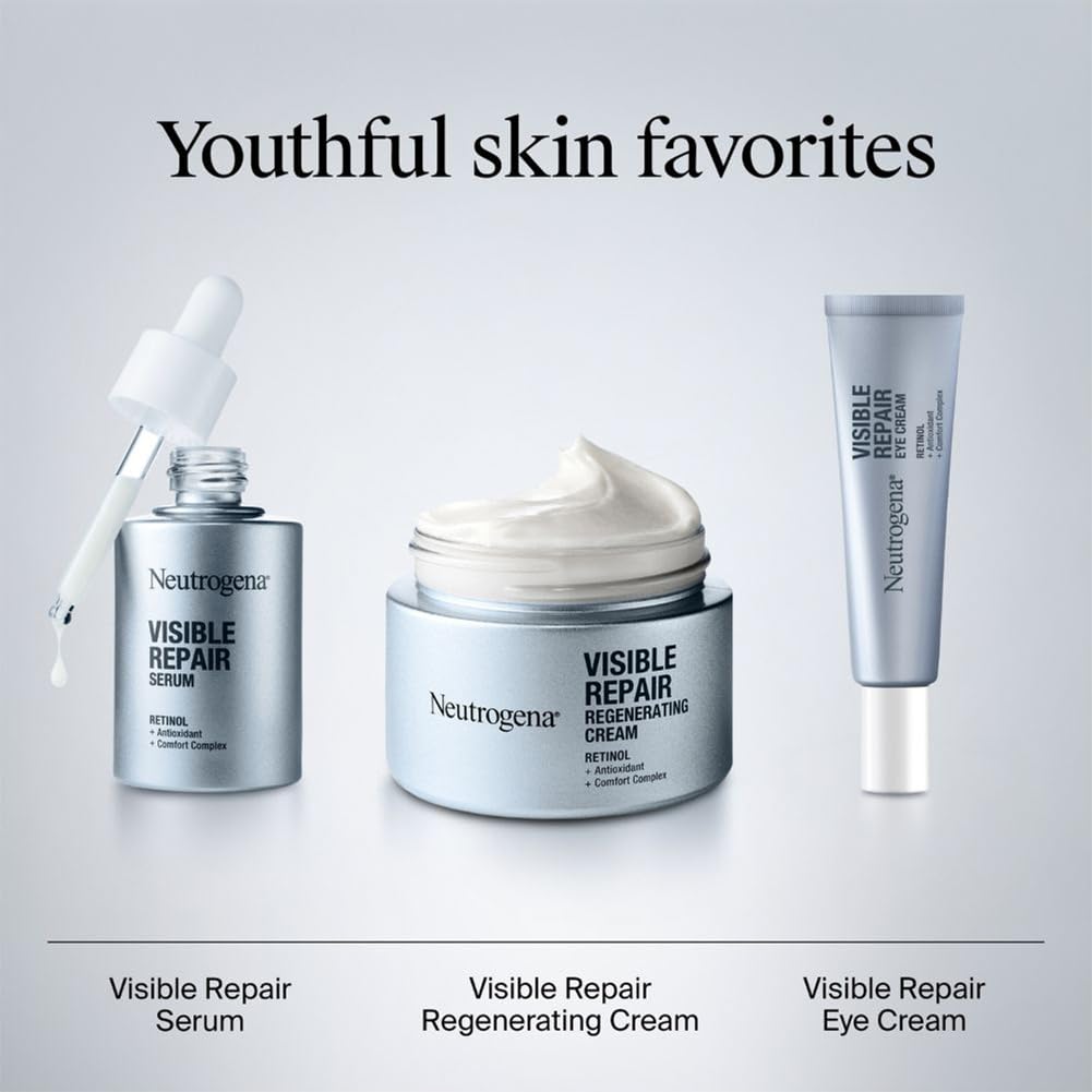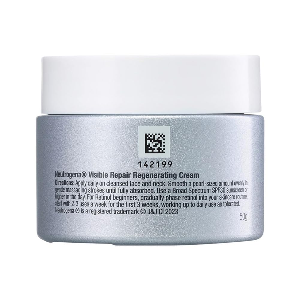 Neutrogena Visible Repair Regenerating Cream visibly repairs wrinkles and early ageing signs in 7 days. This nourishing moisturizing cream delivers our uniquely stabilized retinol within the skin’s surface to improve the signs of ageing and regenerate the look of skin.