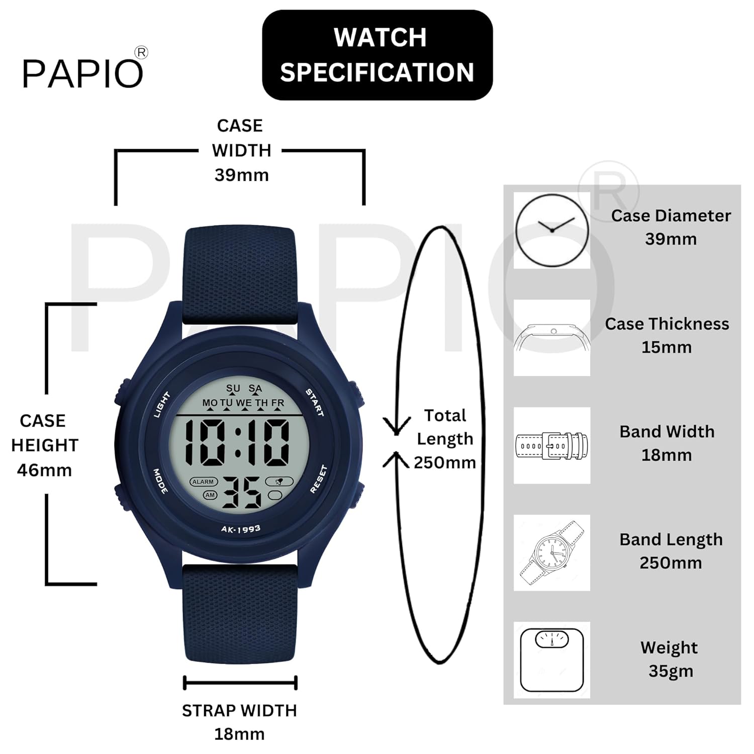 PAPIO® Silicone Belt Digital Sports Watch with 7 Color LCD Display, Water Resistant, Unisex Watch for Women, Girls, Boys and Kids