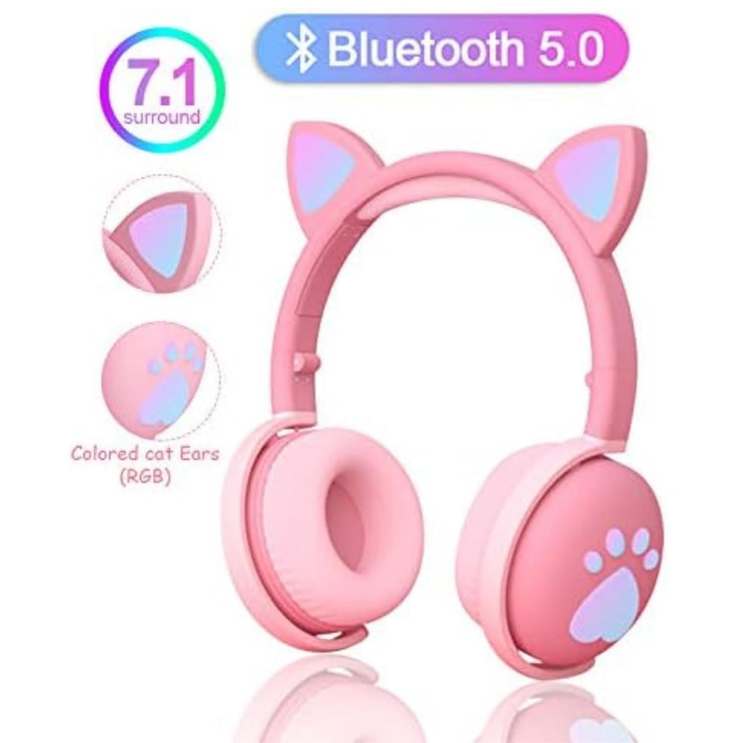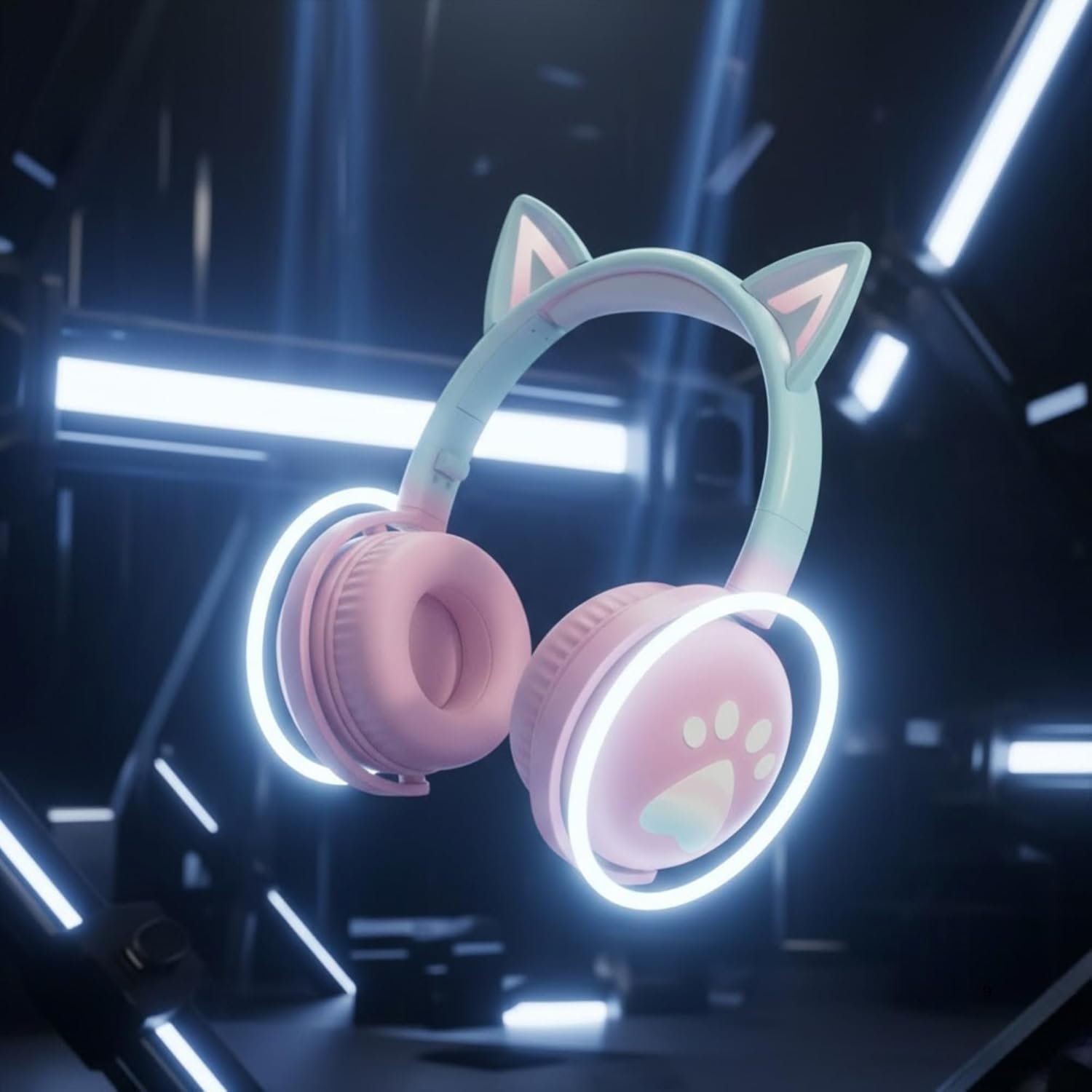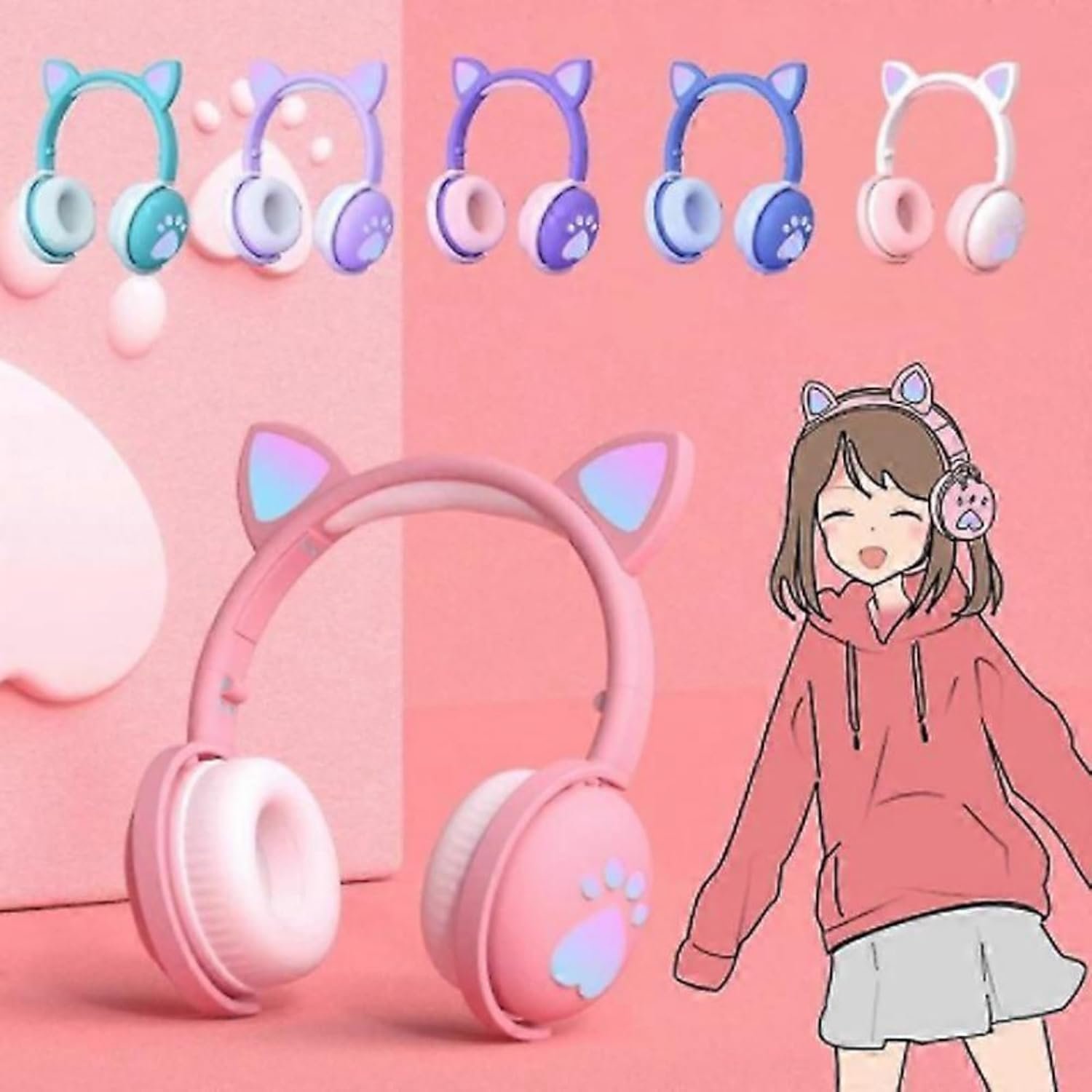 πrumstone (πππππ ππππππππ) Cat Ear Wireless Headphone with LED Light Up Ears Bluetooth Gaming Headset Cushioned Earpads Adjustable Headband Deep Bass Sound Built-in Mic for Kids & Adults