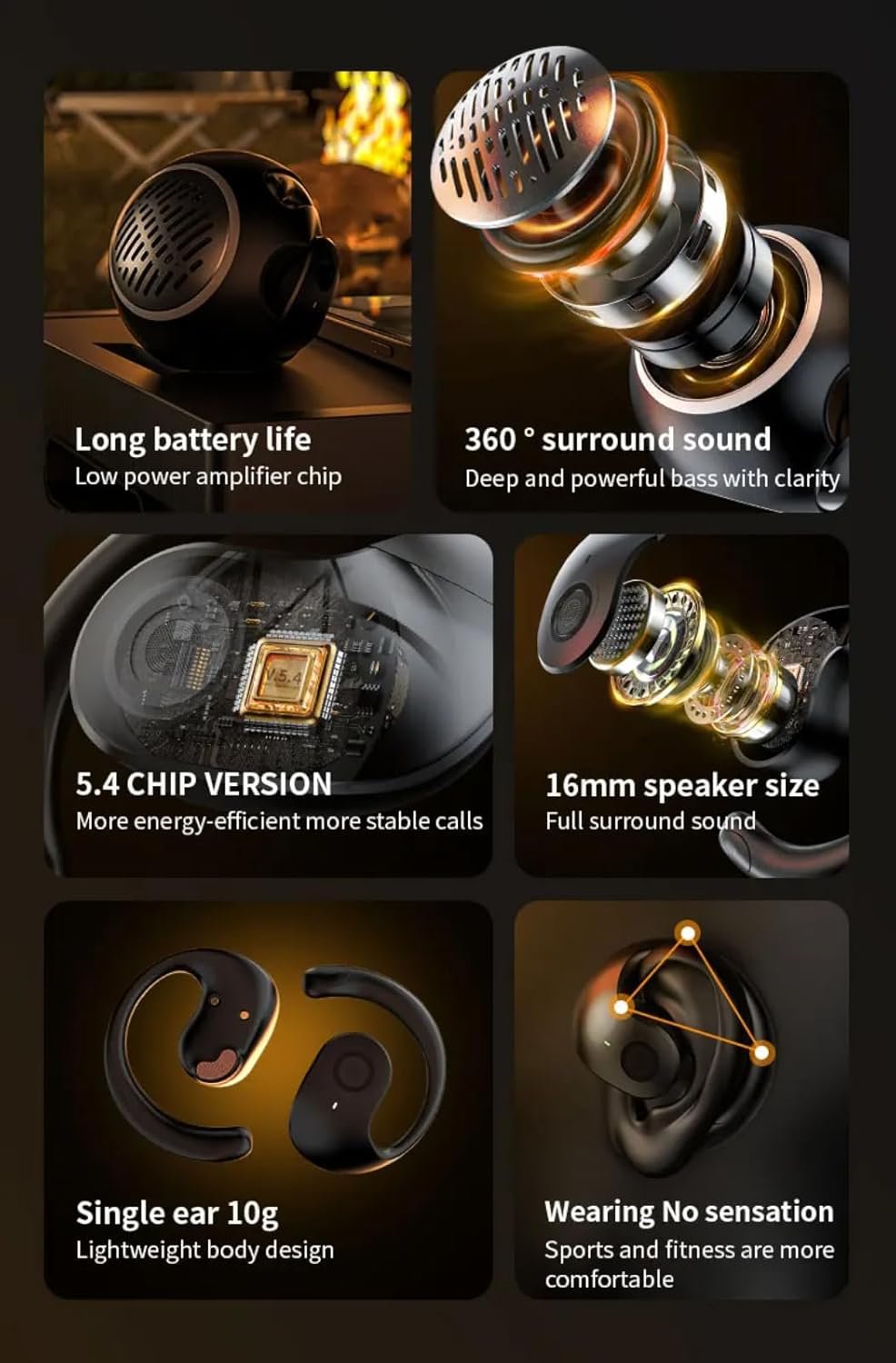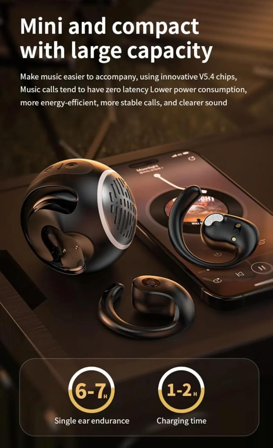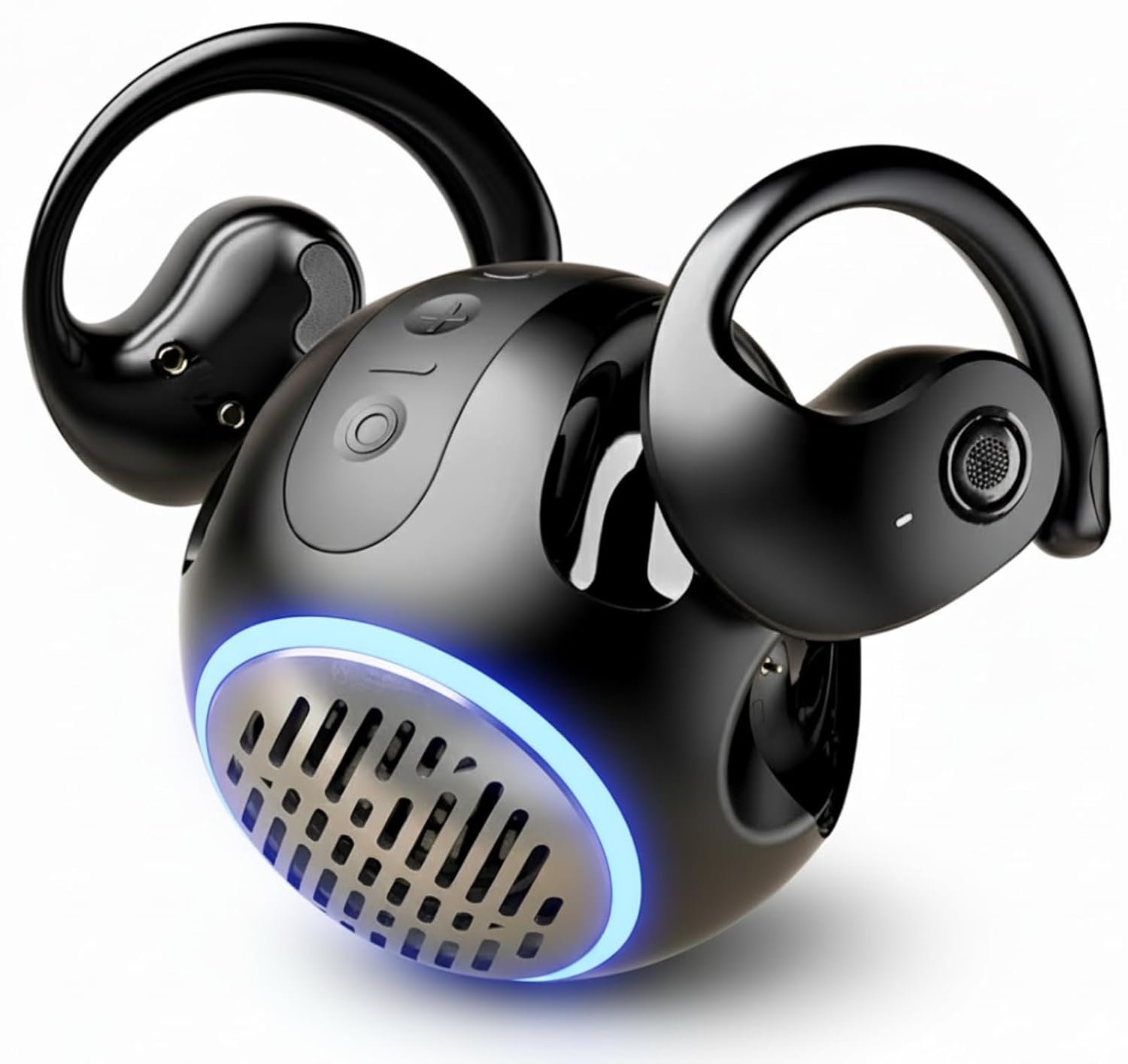 2 in 1 Bluetooth Speaker and OWS Open Ear Hook Wireless Headset for Sports Activity, BT v5.4, Type C Fast Charging, Low Latency Gaming, Compact & Lightweight, IPX5 Water & Sweat Resistant. Black