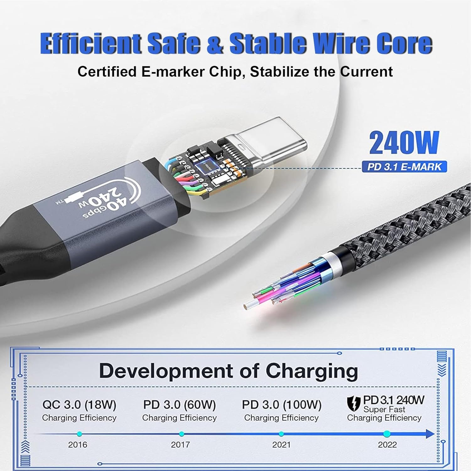 E-marker Chip: Built in with the original E-marker smart chip, it supports fast and efficient USB PD charging, and can provide comprehensive protection for your electronic devices and power supply, ensuring charging speed while providing maximum safety