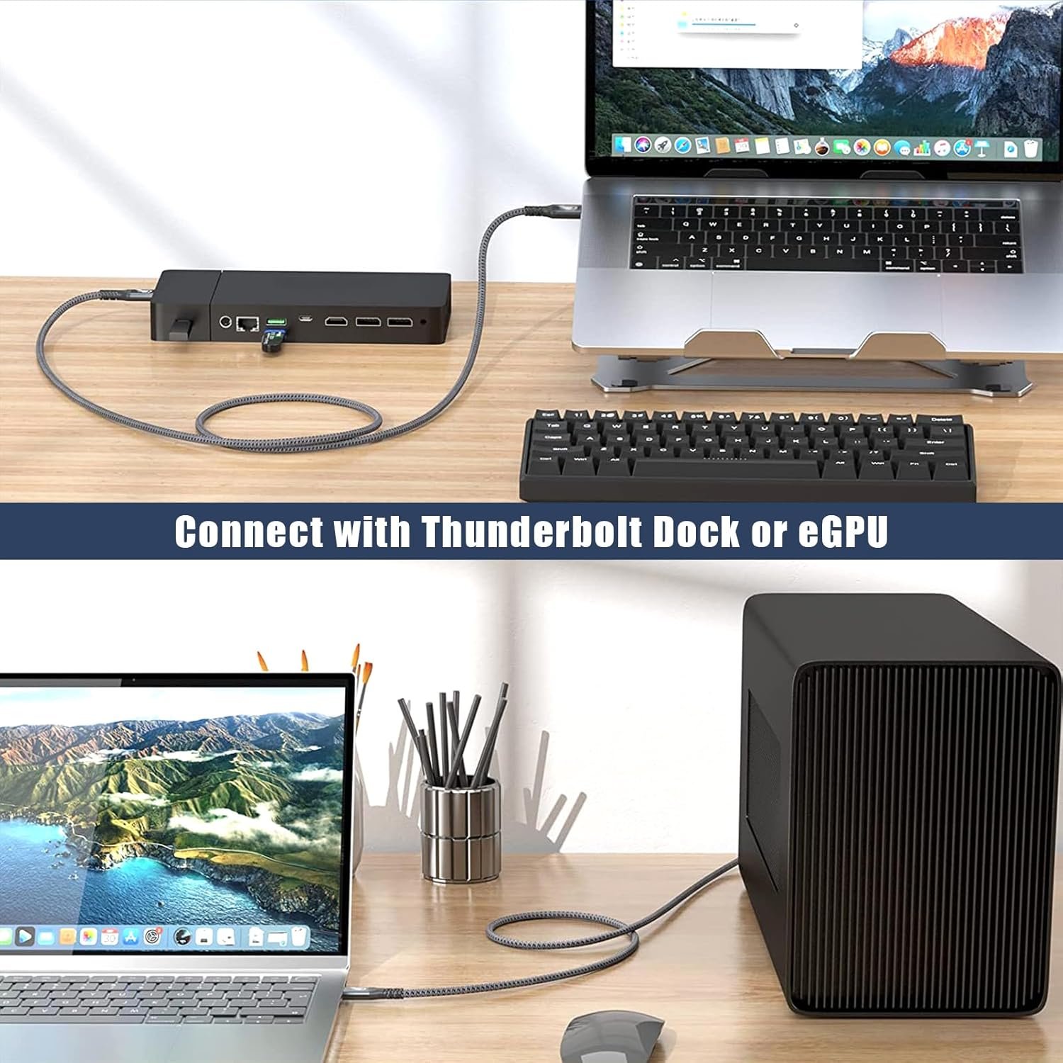8K UHD Video: With this USB data cable, display video can be streamed to a single monitor, supporting up to 8K/ 6k@60hz or two 4k monitors. You can use the docking station to connect to a high-definition video playback device through a laptop computer