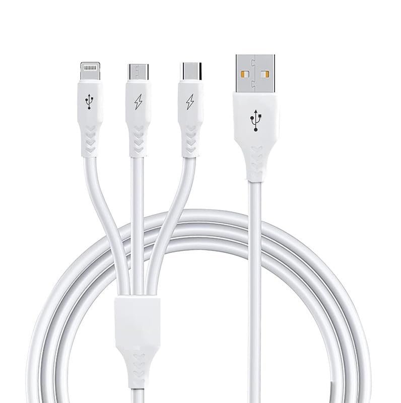 【Portable and Convenient】 The 3 way charger cord is 1.2m long, which makes it suitable for many applications, such as, put this cable in your car so your passengers can charge their phones; Lie on the sofa or bed and play with the phone while charging the phones; Share it with your family when you are watching th TV and so on. One cable is enough when you are traveling.