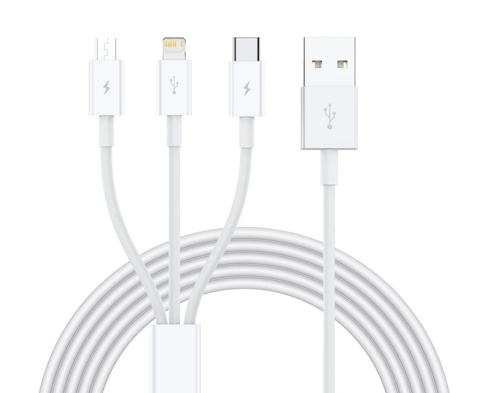 【Portable and Convenient】 The 3 way charger cord is 1.2m long, which makes it suitable for many applications, such as, put this cable in your car so your passengers can charge their phones; Lie on the sofa or bed and play with the phone while charging the phones; Share it with your family when you are watching th TV and so on. One cable is enough when you are traveling.