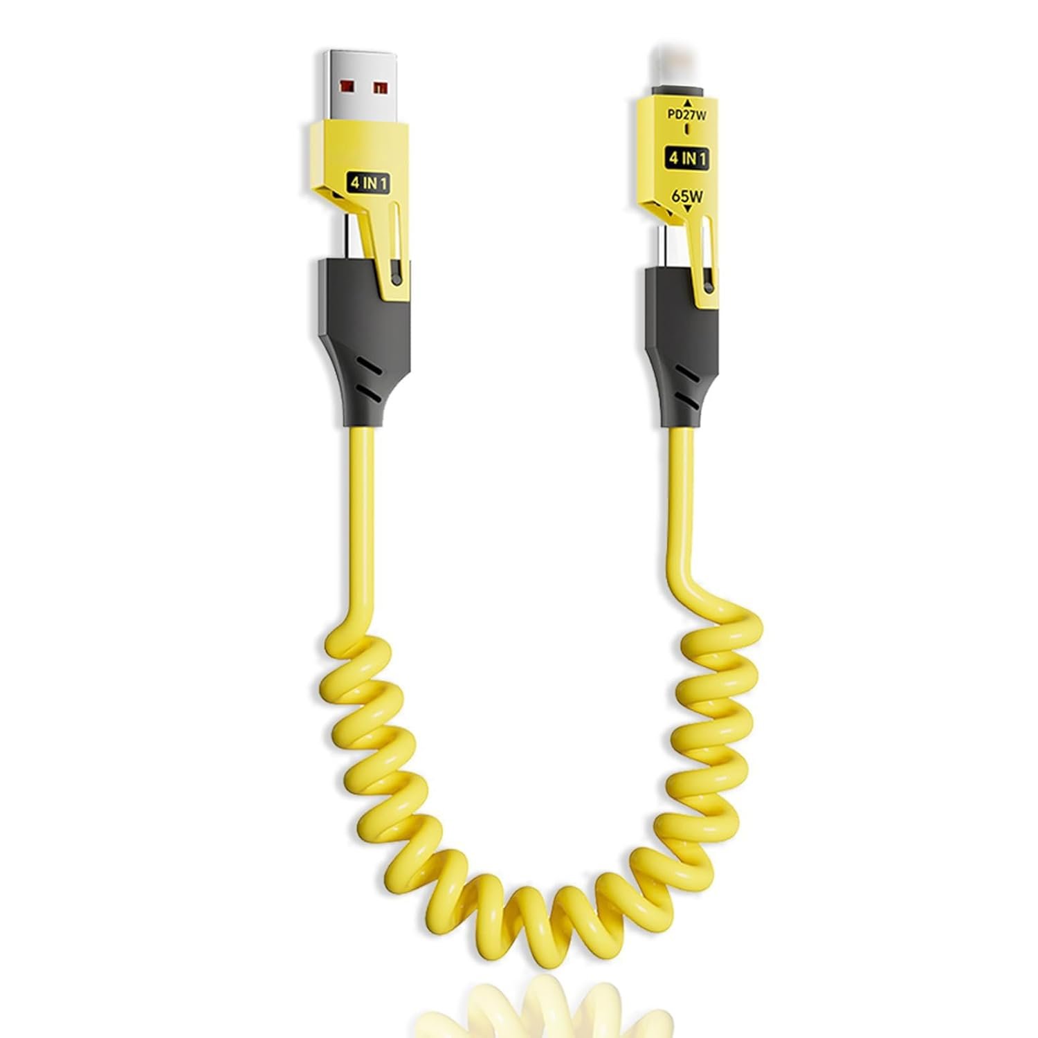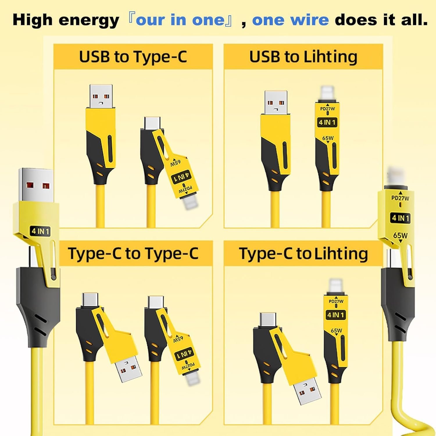 Universal Compatibility: The 4 in 1 fast charging & data cable supports multiple devices including iPhones, Android phones, and laptops; Its versatile design ensures seamless connectivity across various platforms