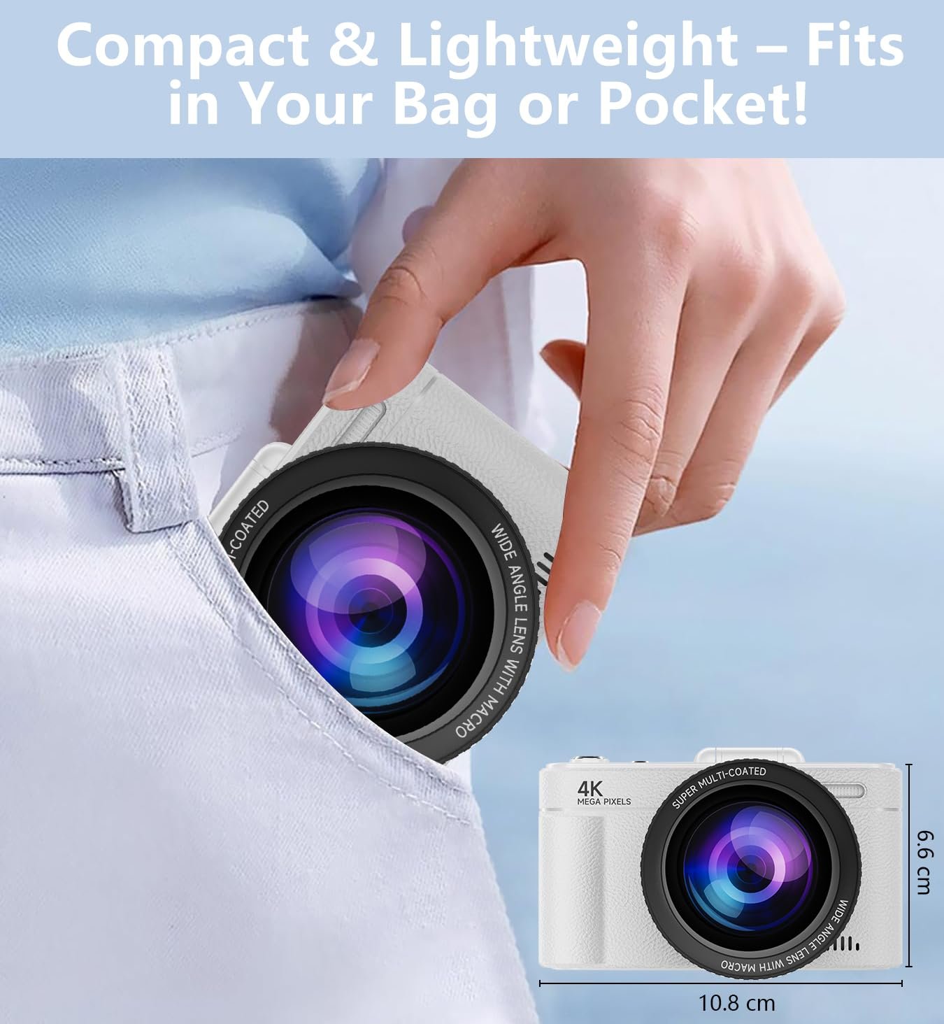 Compact & Travel-Ready: Lightweight body (2.8″ screen) with panorama/night modes—perfect for YouTube, travel, and daily photography.