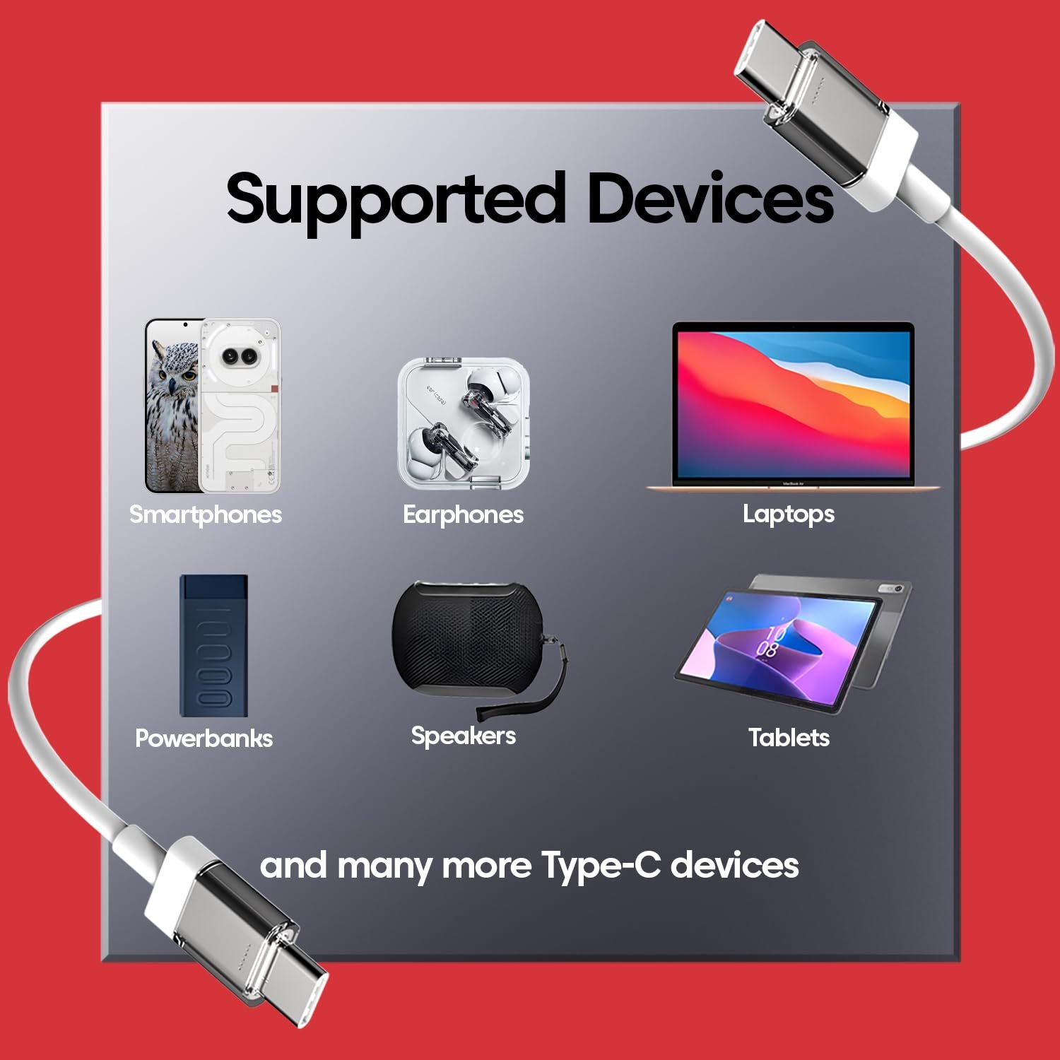 ✅【Universal Compatibility Across USB-C Devices】: Designed for versatility, this cable works seamlessly with all USB-C enabled gadgets including Nothing CMF smartphones, Google Pixel series, Samsung Galaxy devices, MacBook, iPad Pro, and more. Eliminate the need for multiple cables and enjoy the convenience of one solution for all your fast-charging needs.