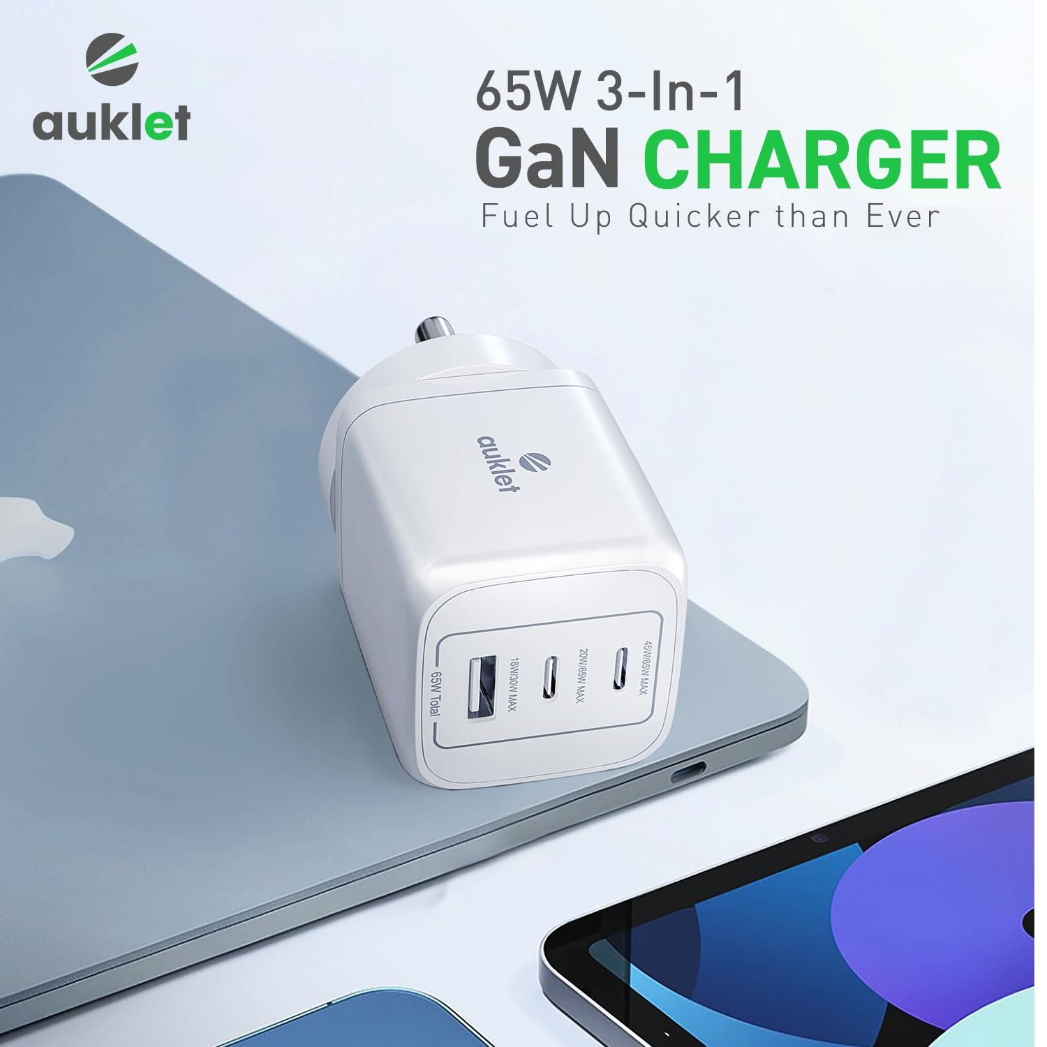 Auklet makes the best charger. It’s fast charging helps me quickly charge my iPhone . Being 65 watt I can charge my Mac and laptop. No worries now to carry different chargers . I can finally travel light