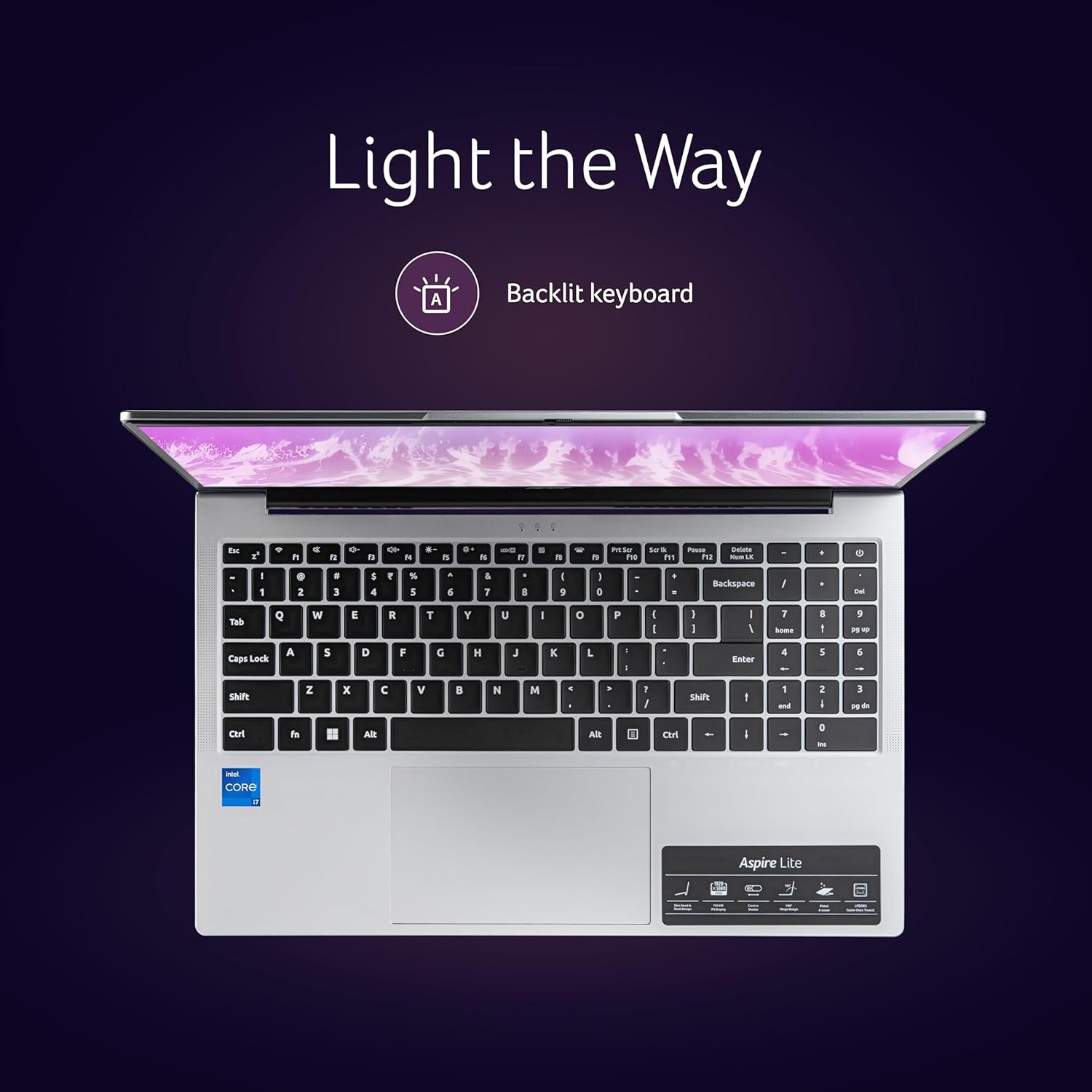 acer Aspire Lite, Intel Core i7 12th Gen – 12650H, 16 GB RAM, 512 GB SSD, Full HD IPS 15.6″/39.62 cm, Windows 11 Home, MS Office, Pure Silver, 1.70 KG, AL15-52H, Backlit Keyboard Laptop