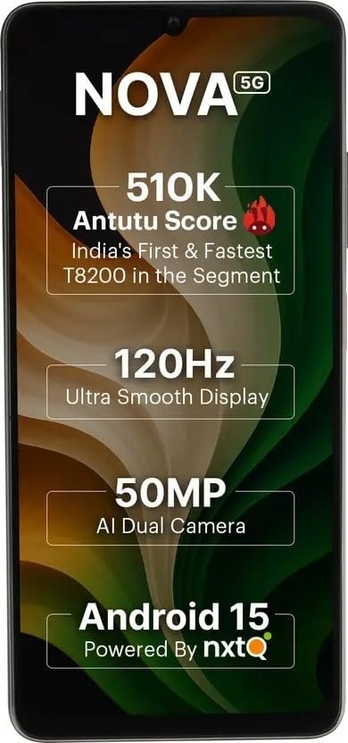 The Ai+ Nova smartphone comes with the Unisoc T8200 8-core processor with a 510K+ AnTuTu score for smooth performance. Enjoy blazing fast 5G connectivity with Dual SIM, ideal for smooth multitasking. Capture stunning shots with the 50 MP AI dual camera and watch ultra-smooth visuals on a 120 Hz screen. Powered with Android 15 with nxtQ, it offers improved speed, personalization, and built-in privacy features to safeguard your data in place.
