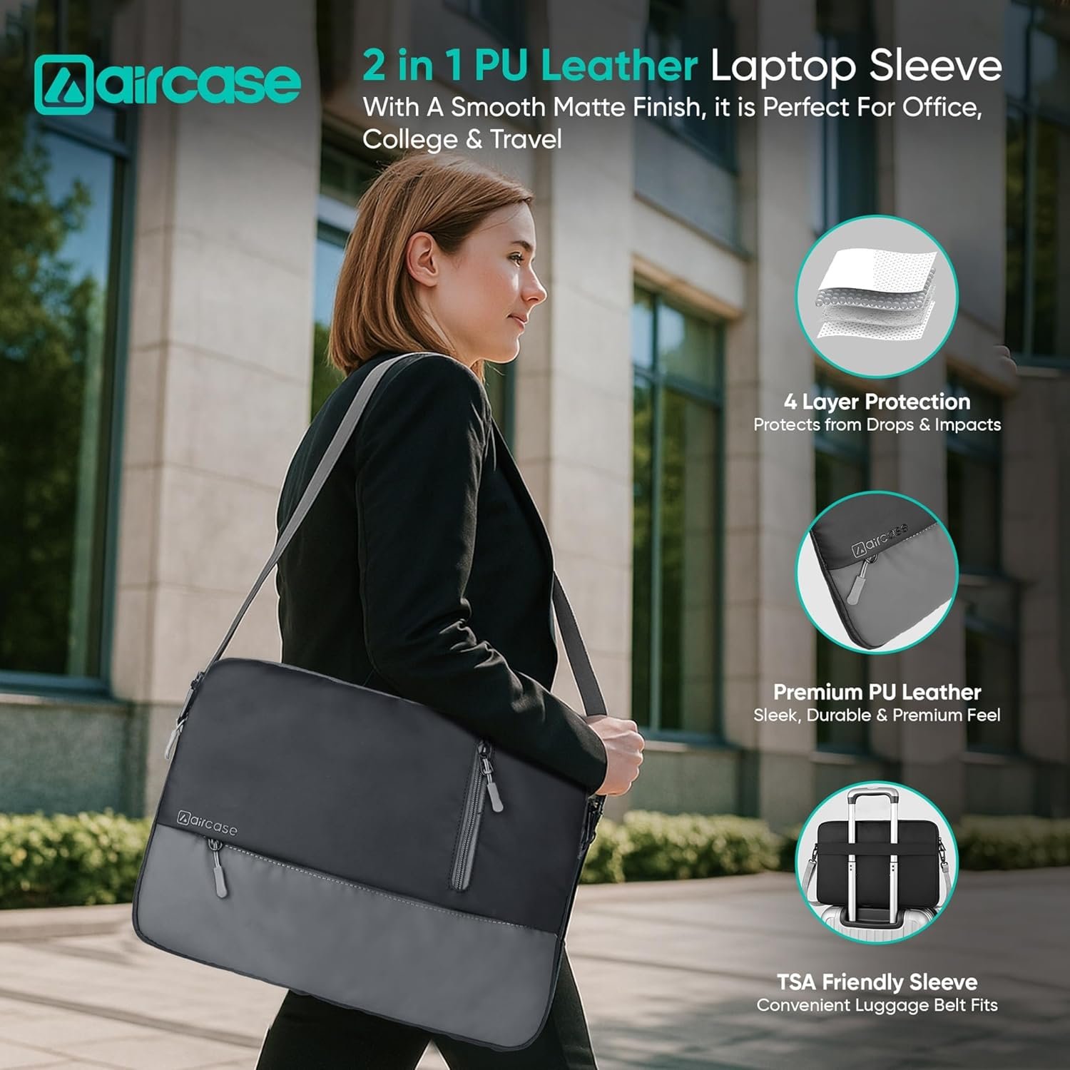 The PU leather finish makes it look like a high-end sleeve. Super classy for office use.