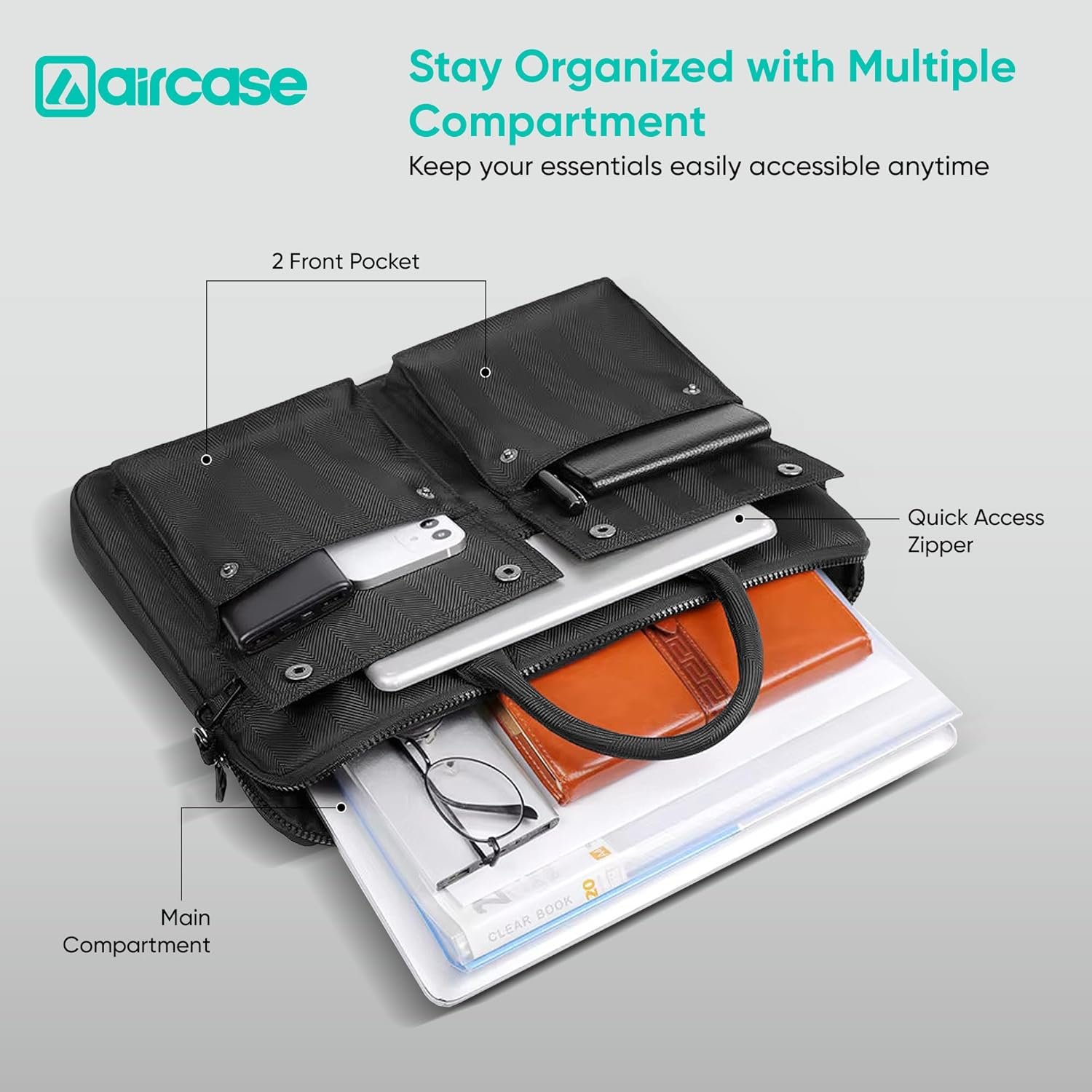 Spacious Compartment & Quick Access Pockets – Stay perfectly organized with a roomy laptop bag for office, college and travel that features a large main compartment, 5 small organizer slots and 1 secure inner pocket to safely store laptop/ tablet, accessories, charger, documents, etc. Includes 2 front button pockets and 1 front zipper pocket for quick access to phone, wallet, passport and keys, making it the ideal laptop bag for men and women who need daily storage, durability and convenience
