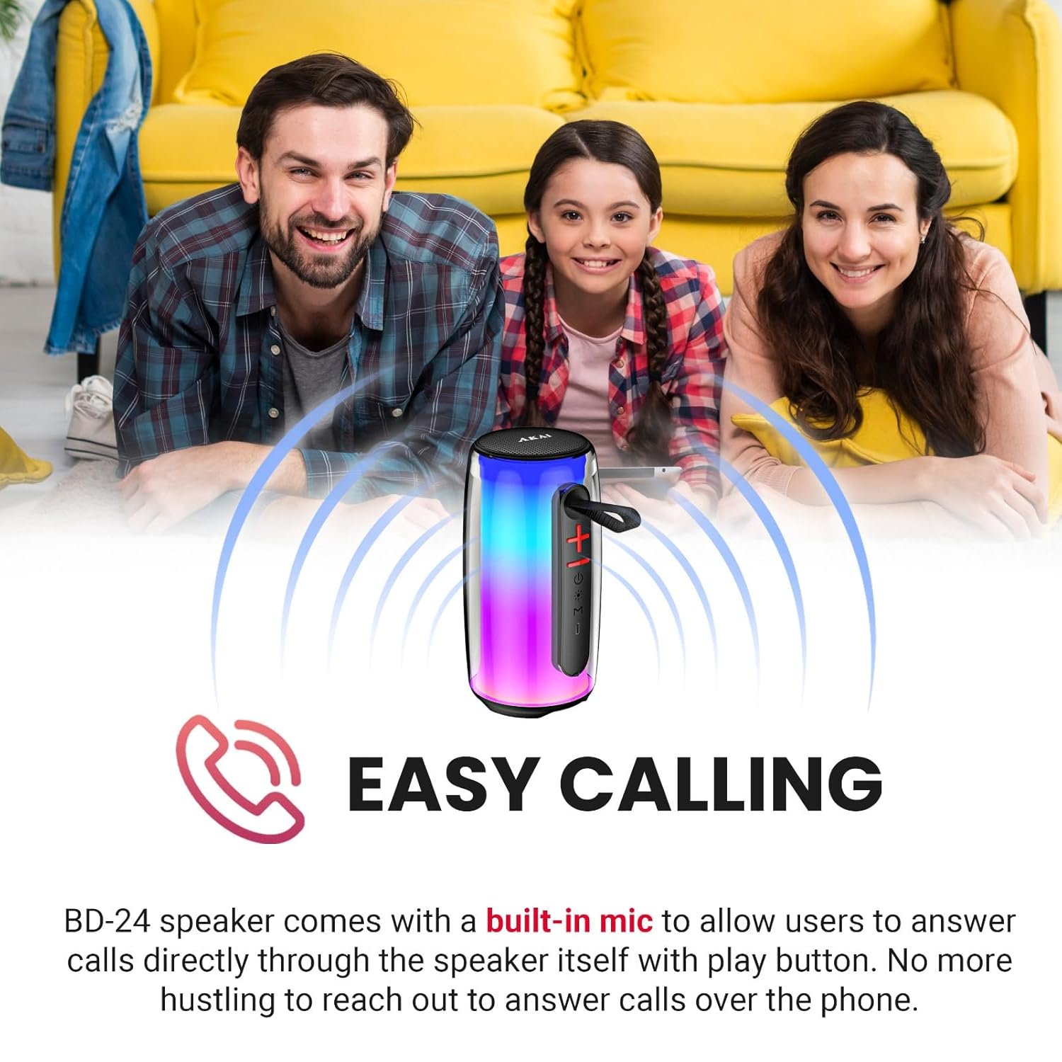 AKAI BD-24 24W RMS Bluetooth Speaker with RGB Lights | Portable Wireless Speaker with TWS, USB, Aux, TF Card | 3600 mAh Battery, 2.5 Inch Driver, Type-C Charging | Up to 5 Hours Playtime