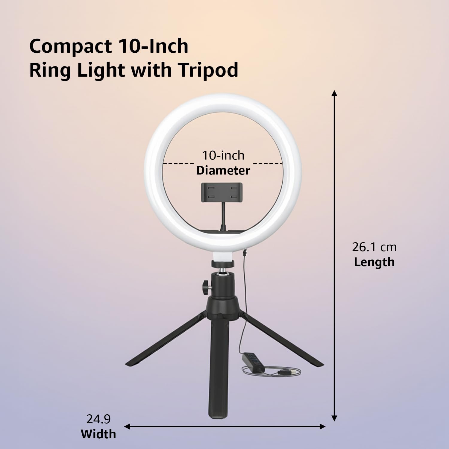 Portable and Lightweight: The 10-inch ring light is compact and easy to transport, making it perfect for on-the-go use and simple setup.