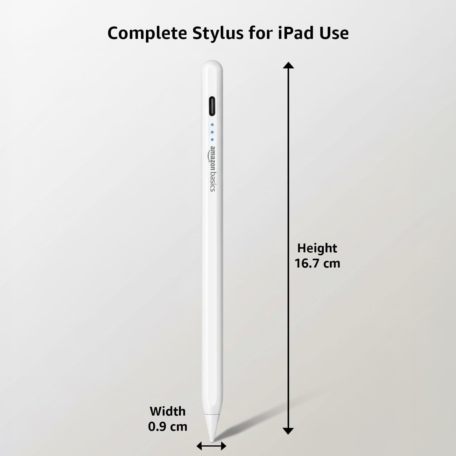 Amazon Basics Upgraded 2nd Gen Stylus Pen | Only for iPad 2018-2025 Air 3/4/5/M2/M3, mini 5/6, 6/7/8/9/10/11, Pro 11″, 12.9″ & M4 | White