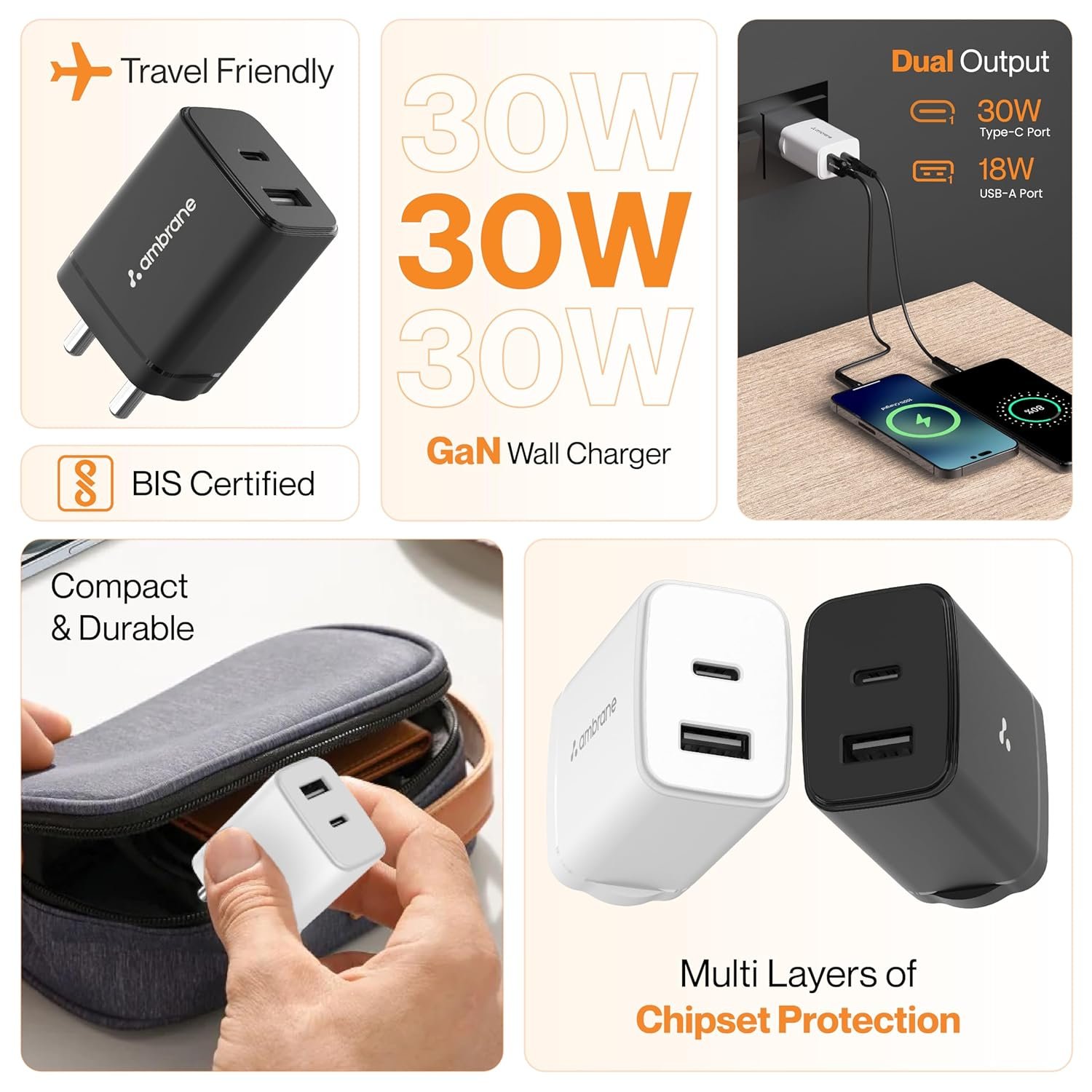 Compact & Portable: With its compact design, Charger 30 is easy to carry and perfect for travel, ensuring you stay powered up wherever you go.