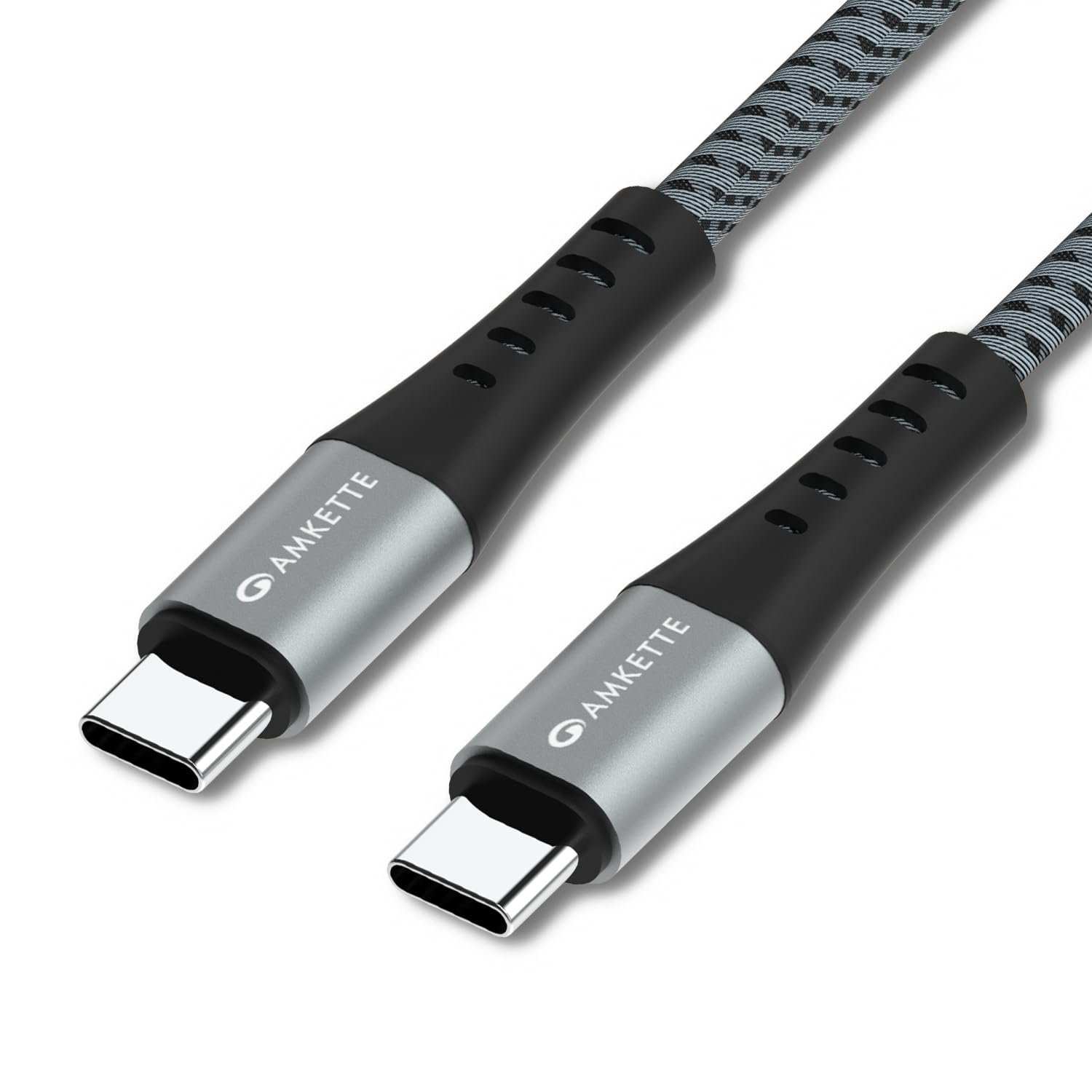 Amkette 100W USB-C to USB-C Cable โ Fast charge laptops, tablets & phones with durable braided build