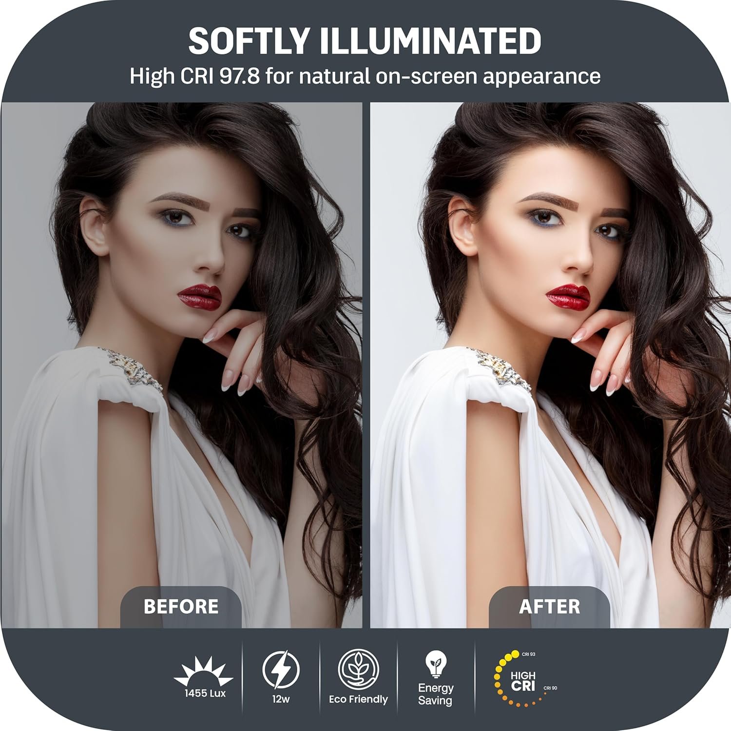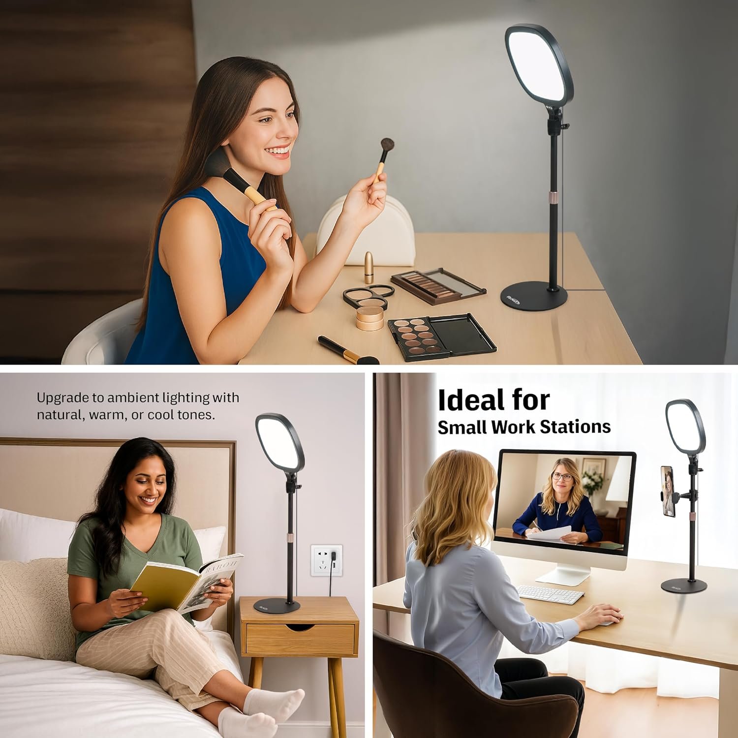 Ergonomically Design: This stylish 7-inch full-screen webcam light features a sturdy metal base to ensure durability. The metal base comes with a non-slip pad for superior stability, slip resistance and scratch resistance to protect your desktop surface.