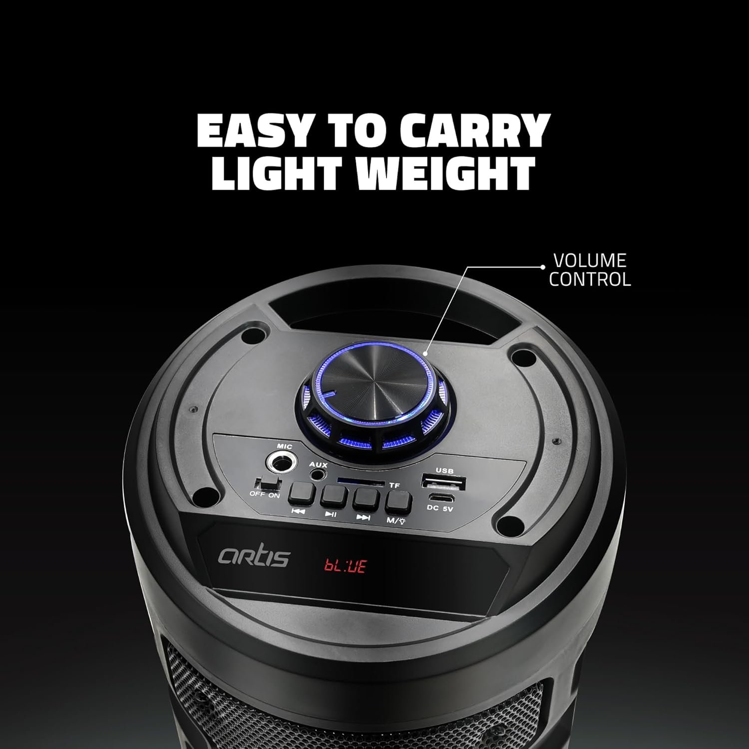 Artis MS301 Wireless Bluetooth Portable Party Speaker with RGB Glow Lights, Wired Mic, Remote Control, FM Radio & Aux in/USB/TF Card Reader Input (20W RMS Output)