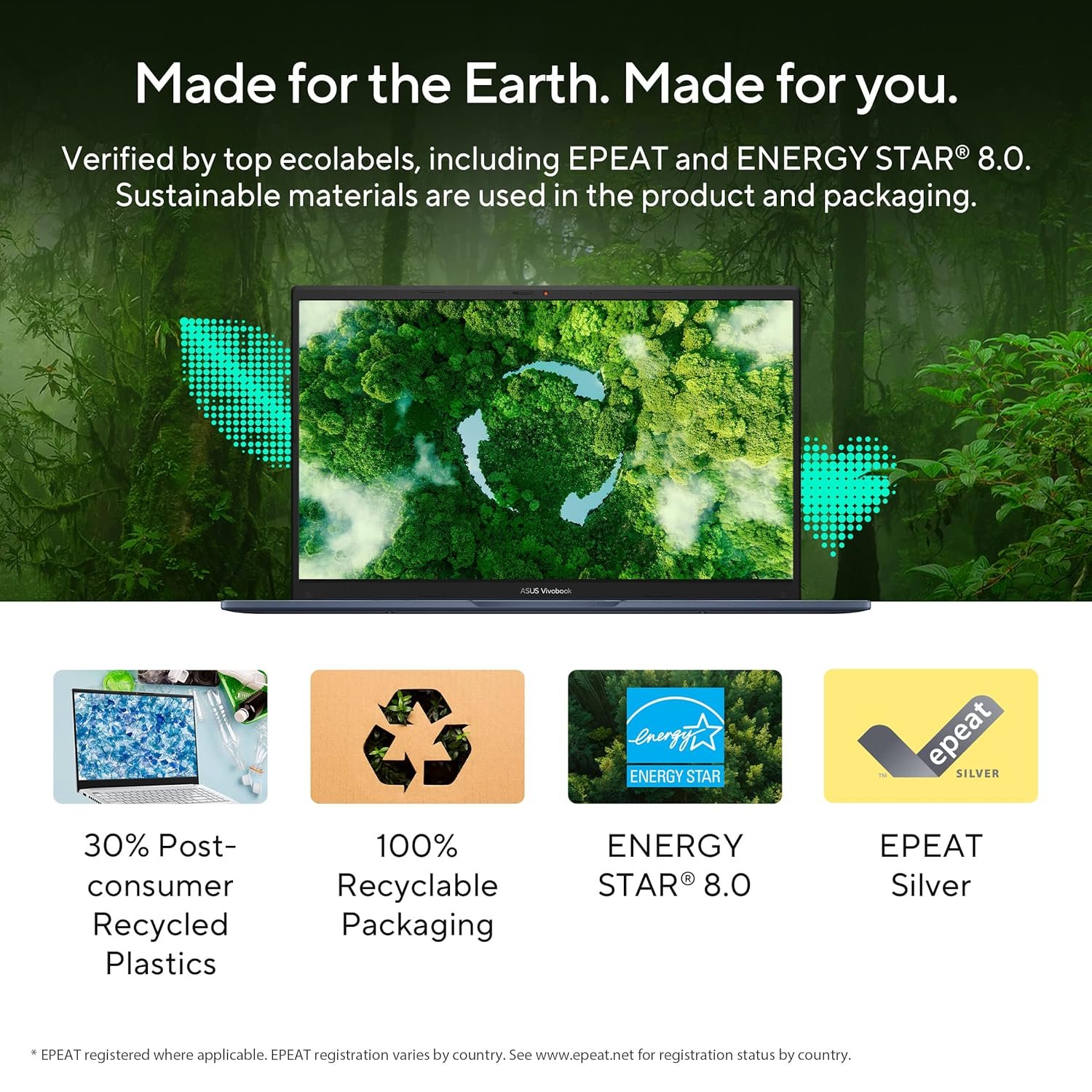 Vivobook 15 has a lid with a special raised logo tag, and it’s available in your choice of three eye-catching colors: charming Quiet Blue, Transparent Silver, or cozy Terra Cotta — just pick your favorite! It’s slim enough to pop unobtrusively into any backpack and light enough for easy one-handed carrying.