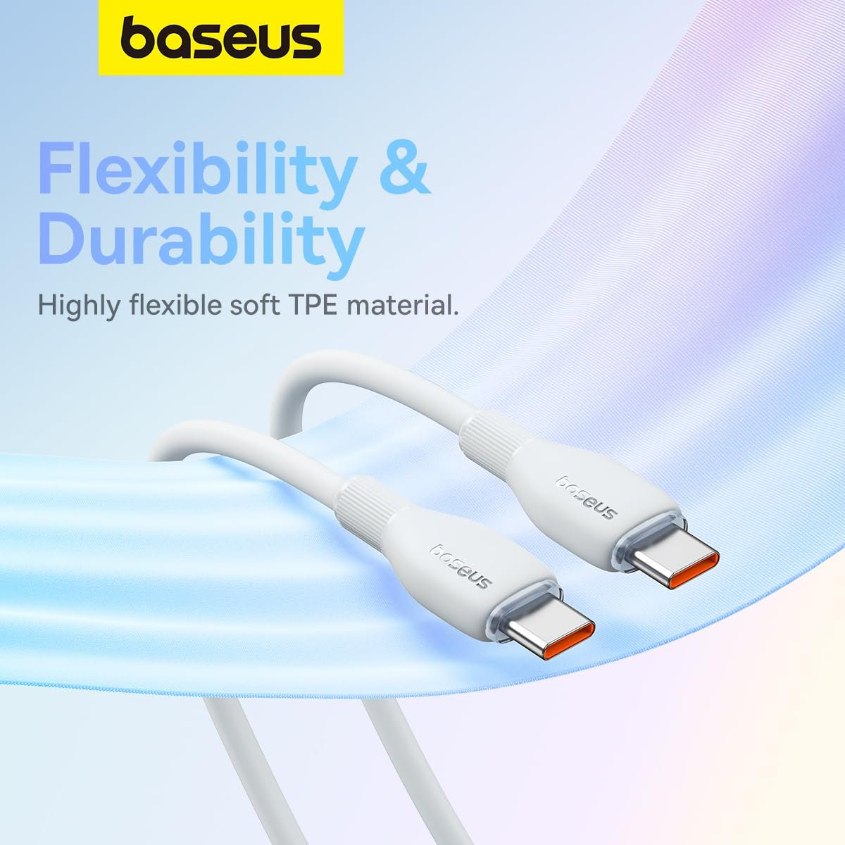 Baseus Pudding Series Fast Charging Cable, Type-C to Type-C, 100W PD, 1.2 Meter – Stellar White | Durable & Stylish USB-C Cable for Phones, Tablets, Laptops