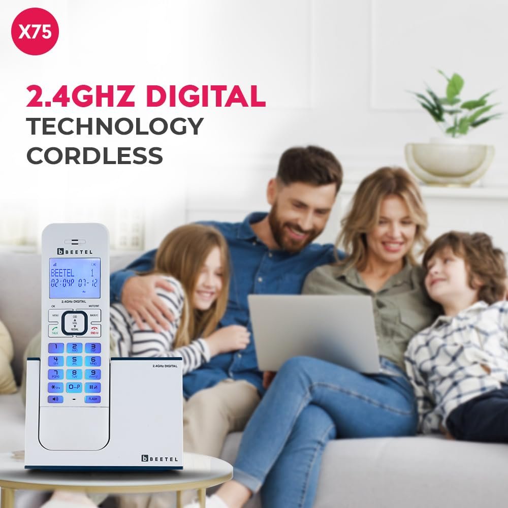 Beetel X75 2.4Ghz Cordless Landline Phone,Dual Mode DTMF/FSK,1 Line 7segment LCD Display& Blue LED Backlit,Illuminated Keypad,2 Way Speaker Phone,6 Step Ringer Volume Control(Blue/White)(X75)