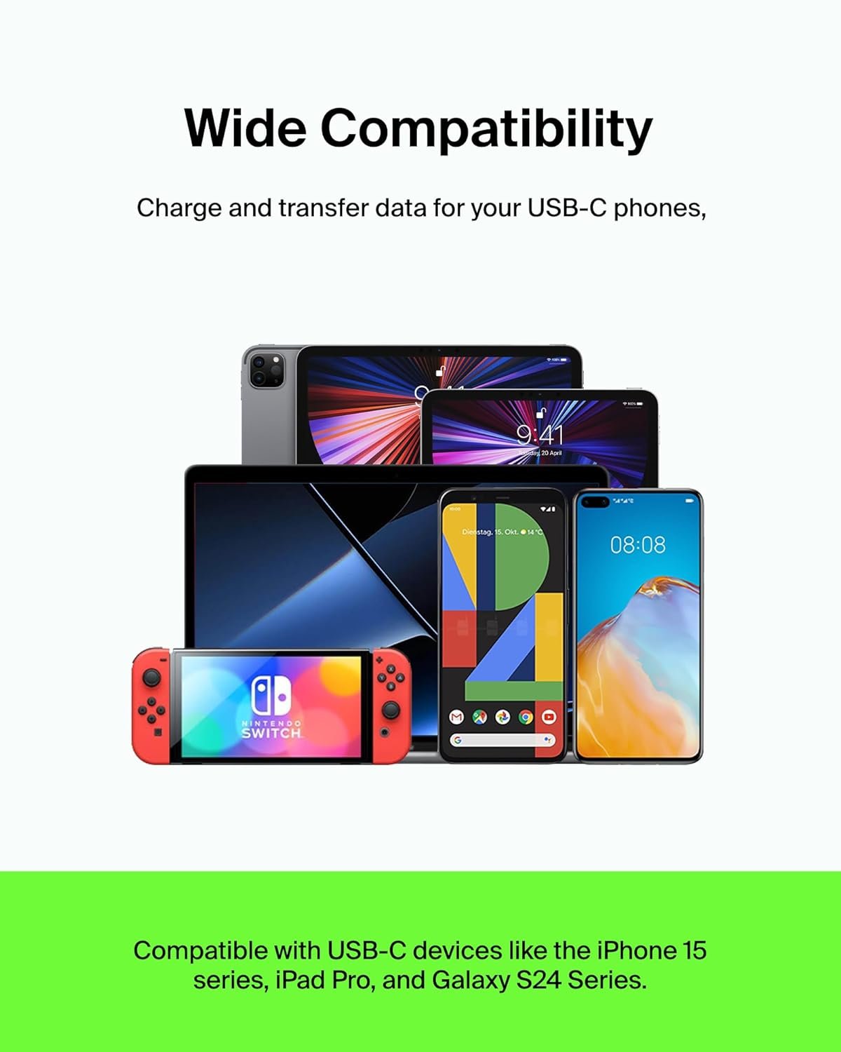 Get a fast charge, up to 50% in around 36 minutes* with sturdy USB-C to USB-C cables. Use them at home, in your car, or anywhere you need to sync music, photos, or data and charge your devices.